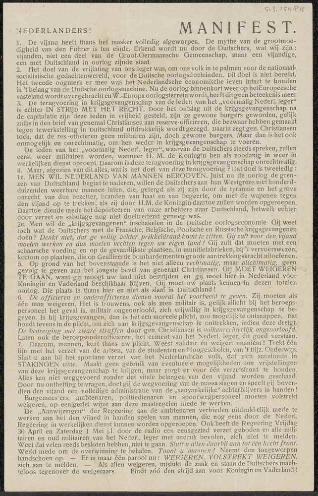 Map Illegaliteit (diverse zaken): Pamflet: Manifest ...