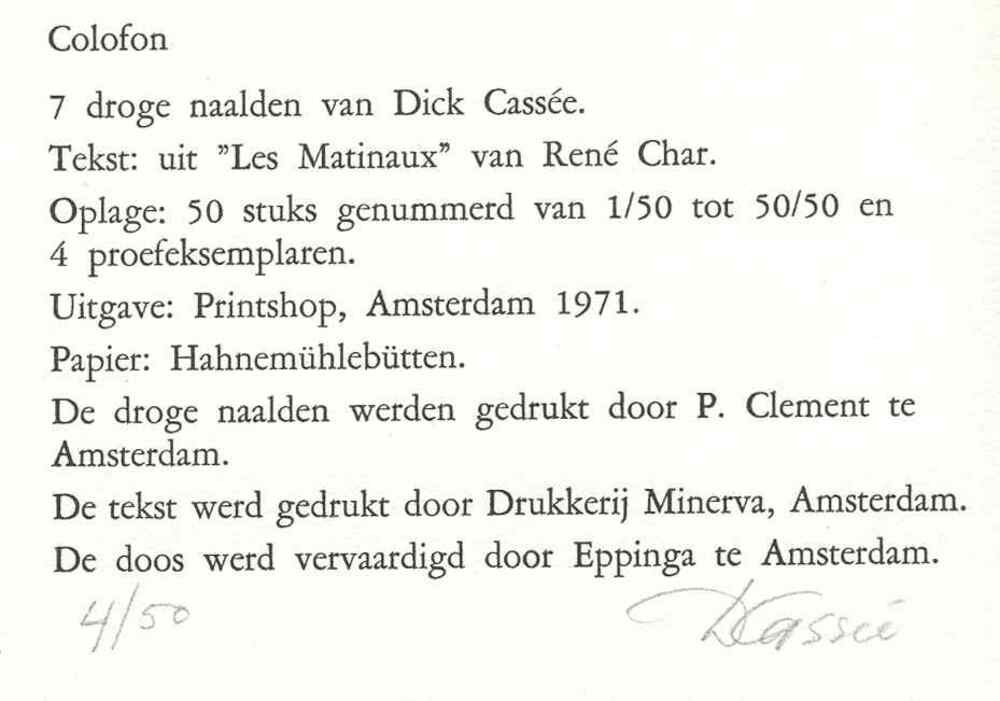 Album met zeven droge naald etsen en tekstblad van D...
