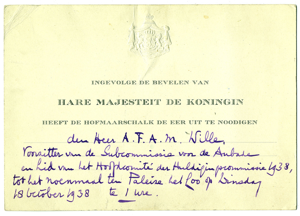 Uitnodiging van koningin Wilhelmina aan A.F.A.M. Wil...