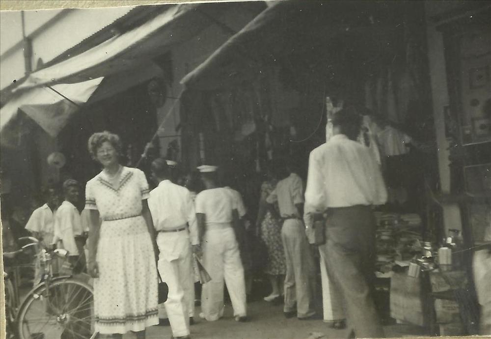 Nederlands-Indië, Singapore, Change Alley, wandelaar...