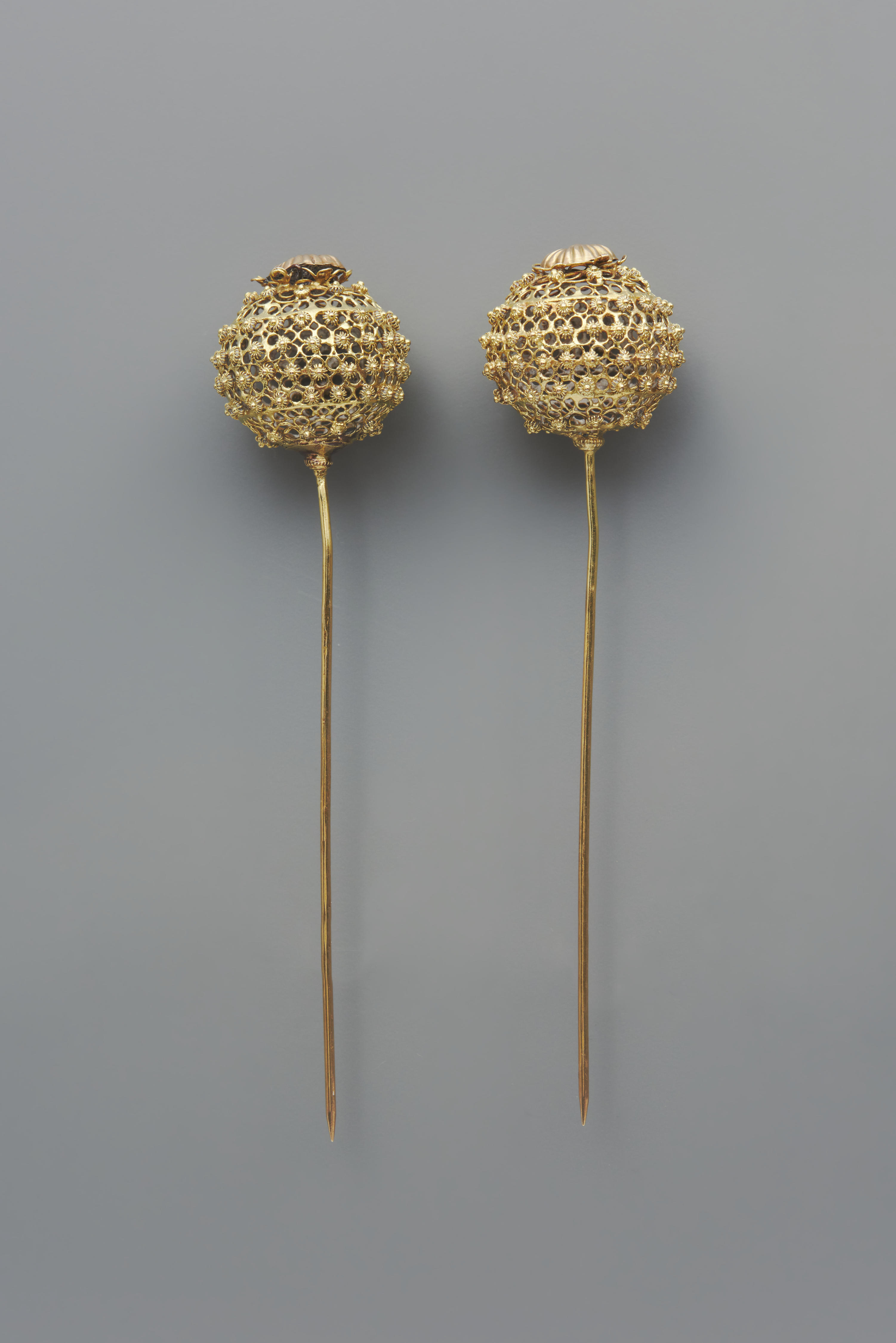 Paar gouden 'kroonspelden', Zuid-Beveland, circa 1900