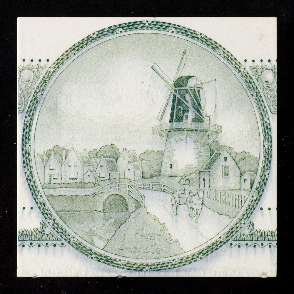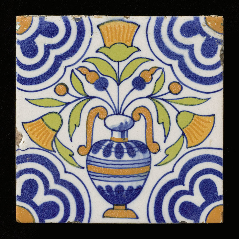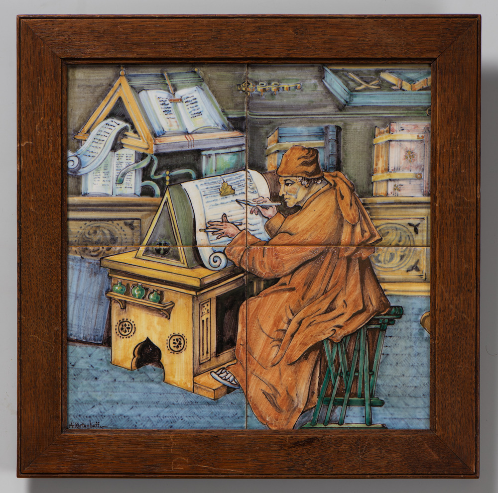 tegeltableau van keramiek met tinglazuur, voorstelle...