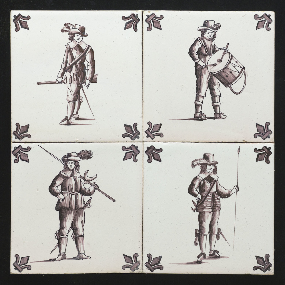 Tegelveld bestaande uit vier tegels van keramiek met...