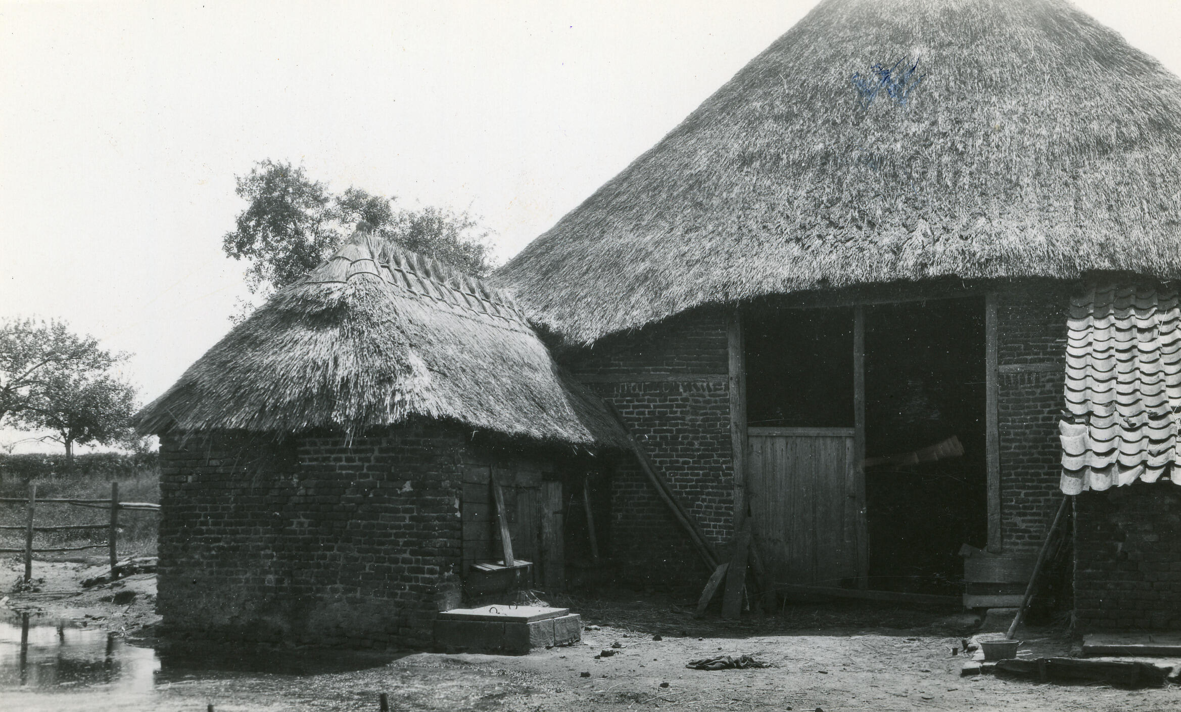 Schuur en bakhuis, Maashees, 1930 (zwart-wit foto)