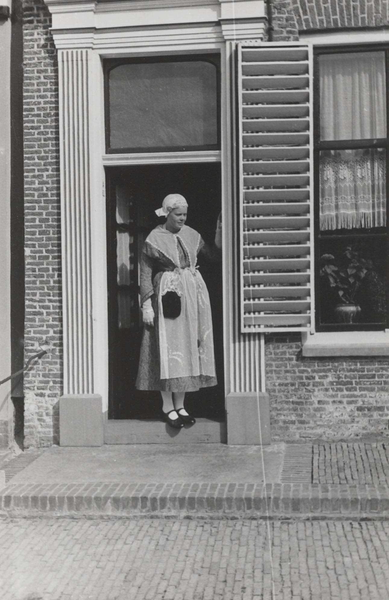 Vrouw uit Workum, verkleed in Friese dracht, 1944 (z...