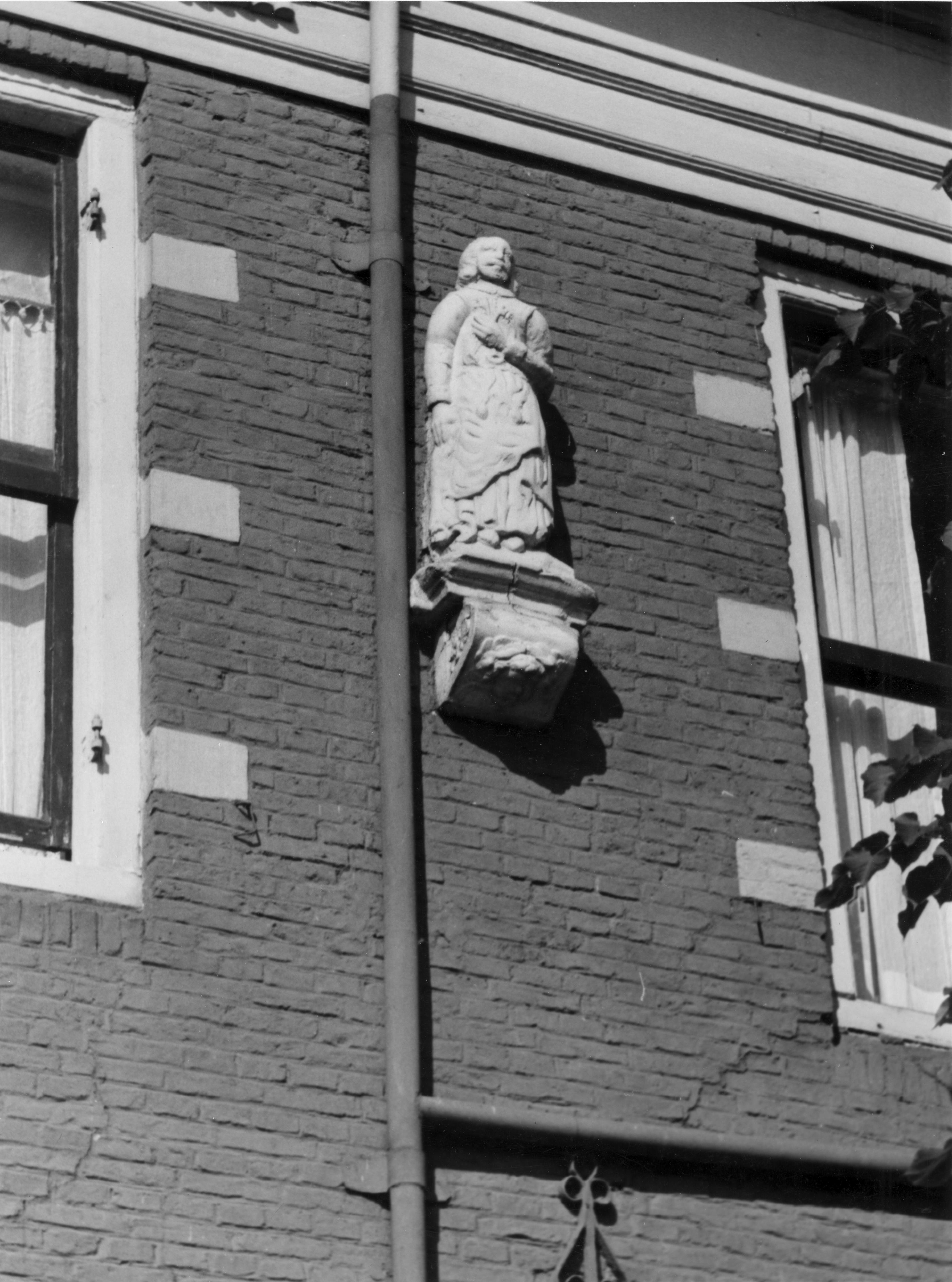 Beeld aan een gevel, Workum, 1944 (zwart-wit negatief)