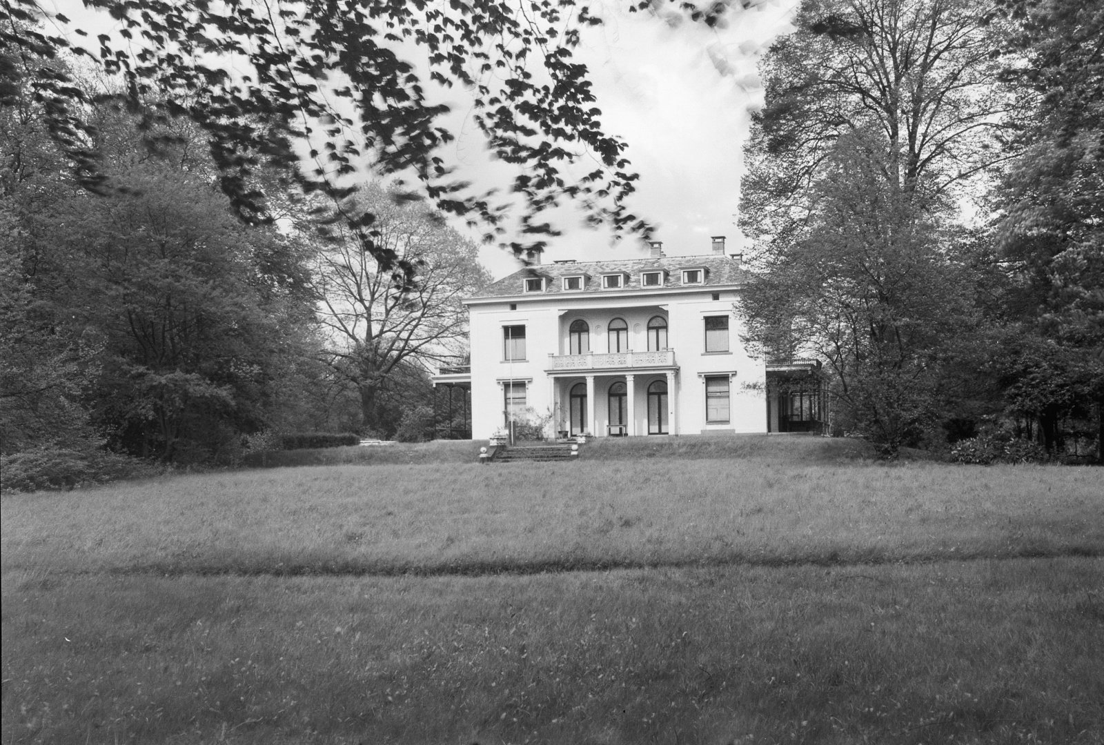 Overzicht van in park gelegen witgepleisterd landhui...