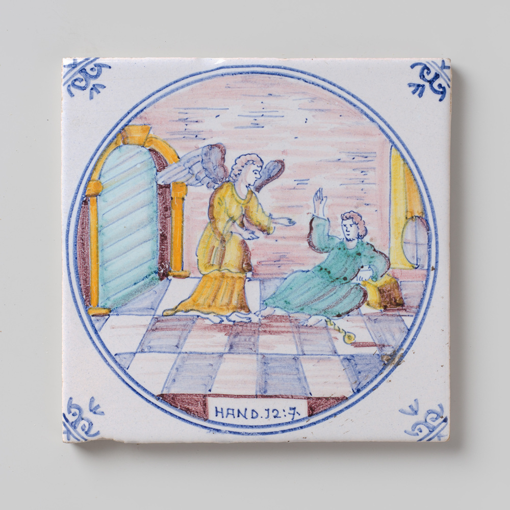 Tegel van aardewerk met tinglazuur, met voorstelling...
