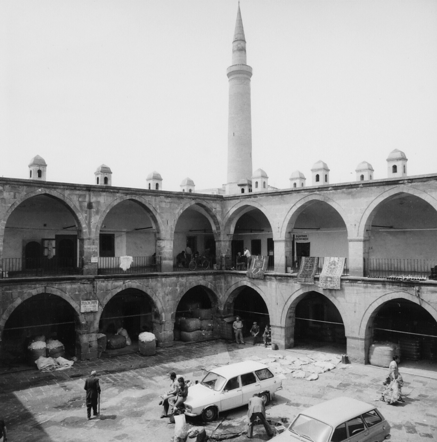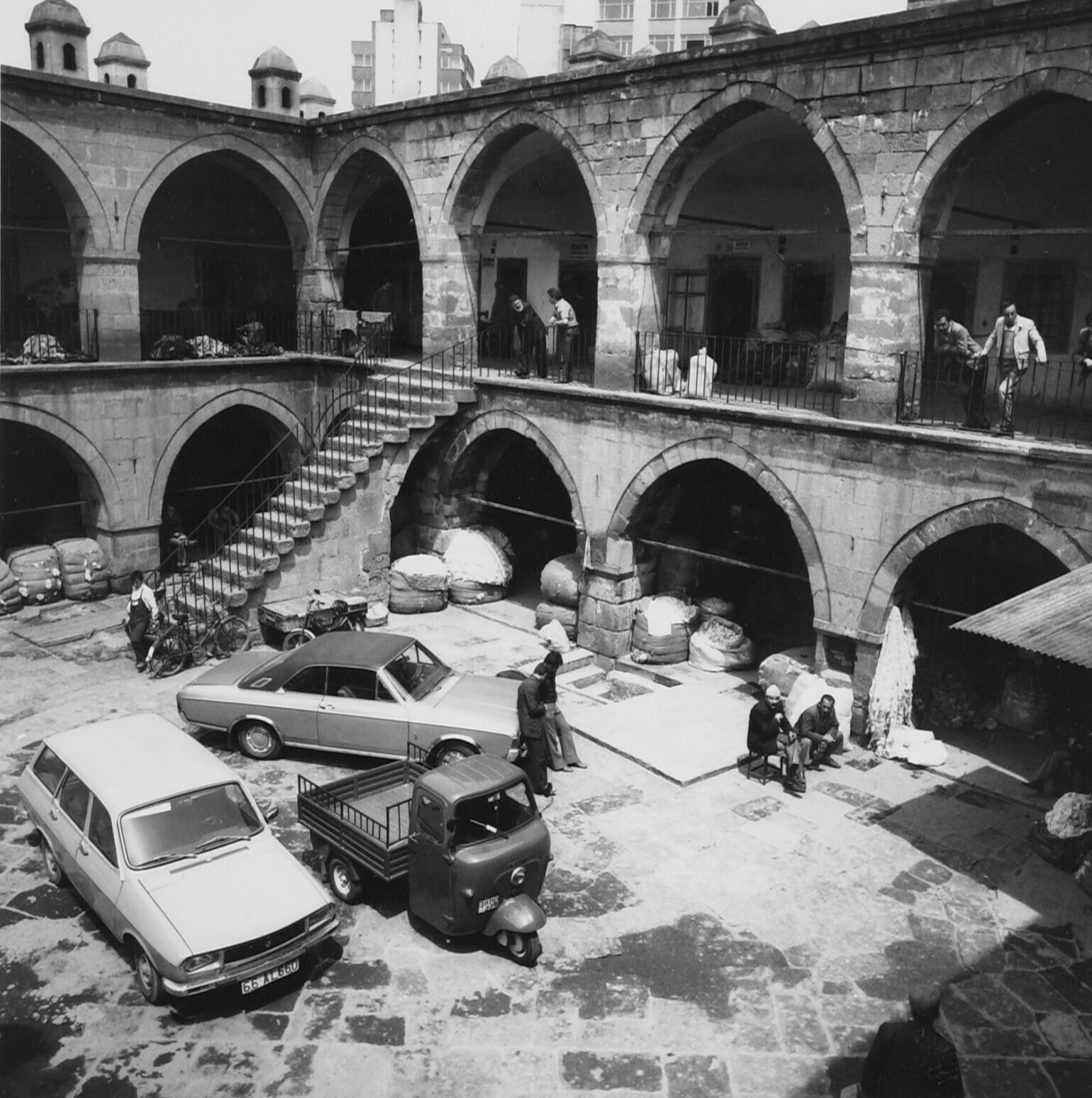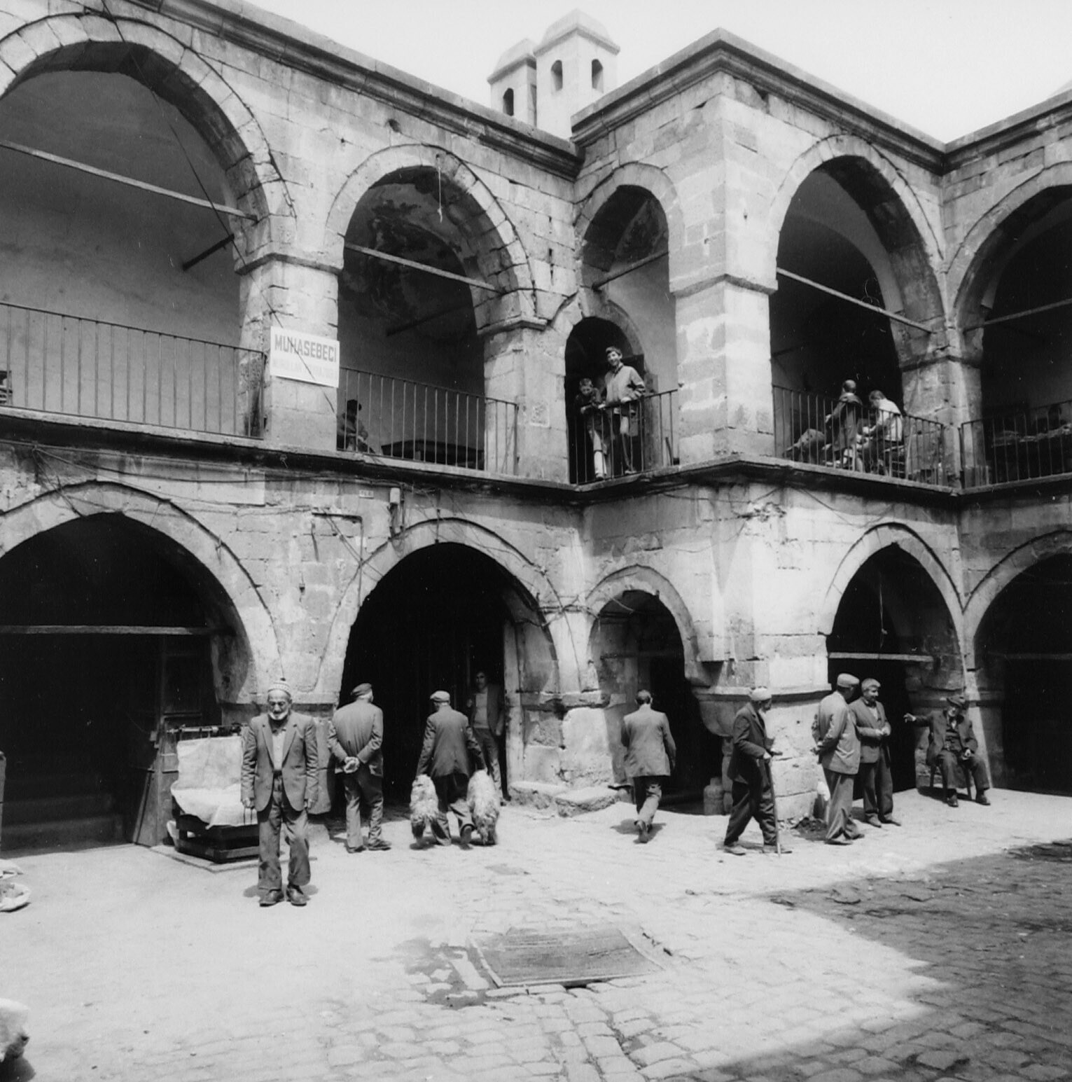 Binnenplaats van de Han, soort hotel, met wolhandelaren