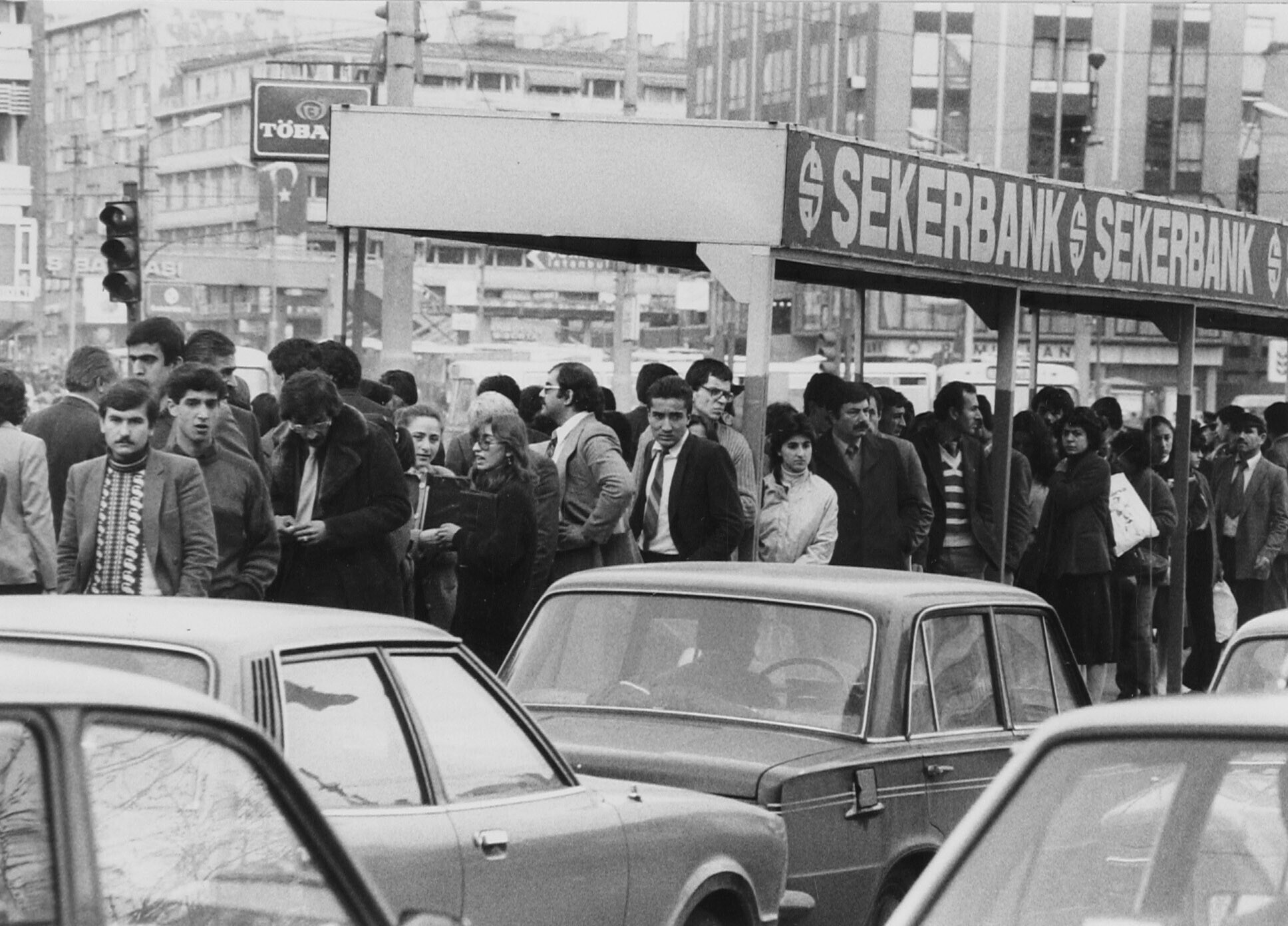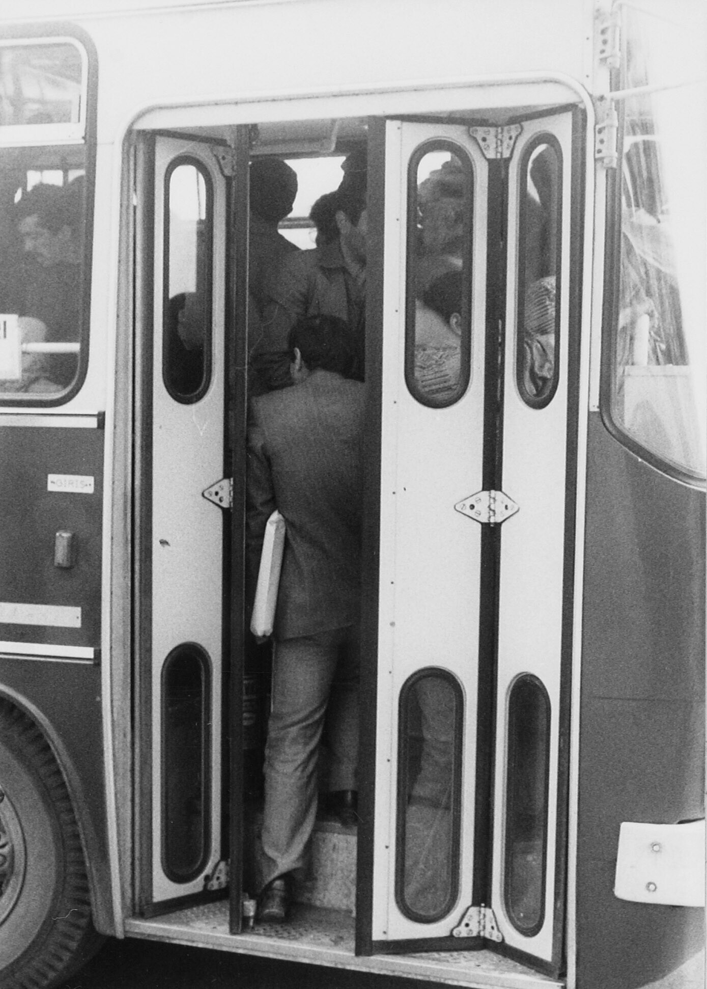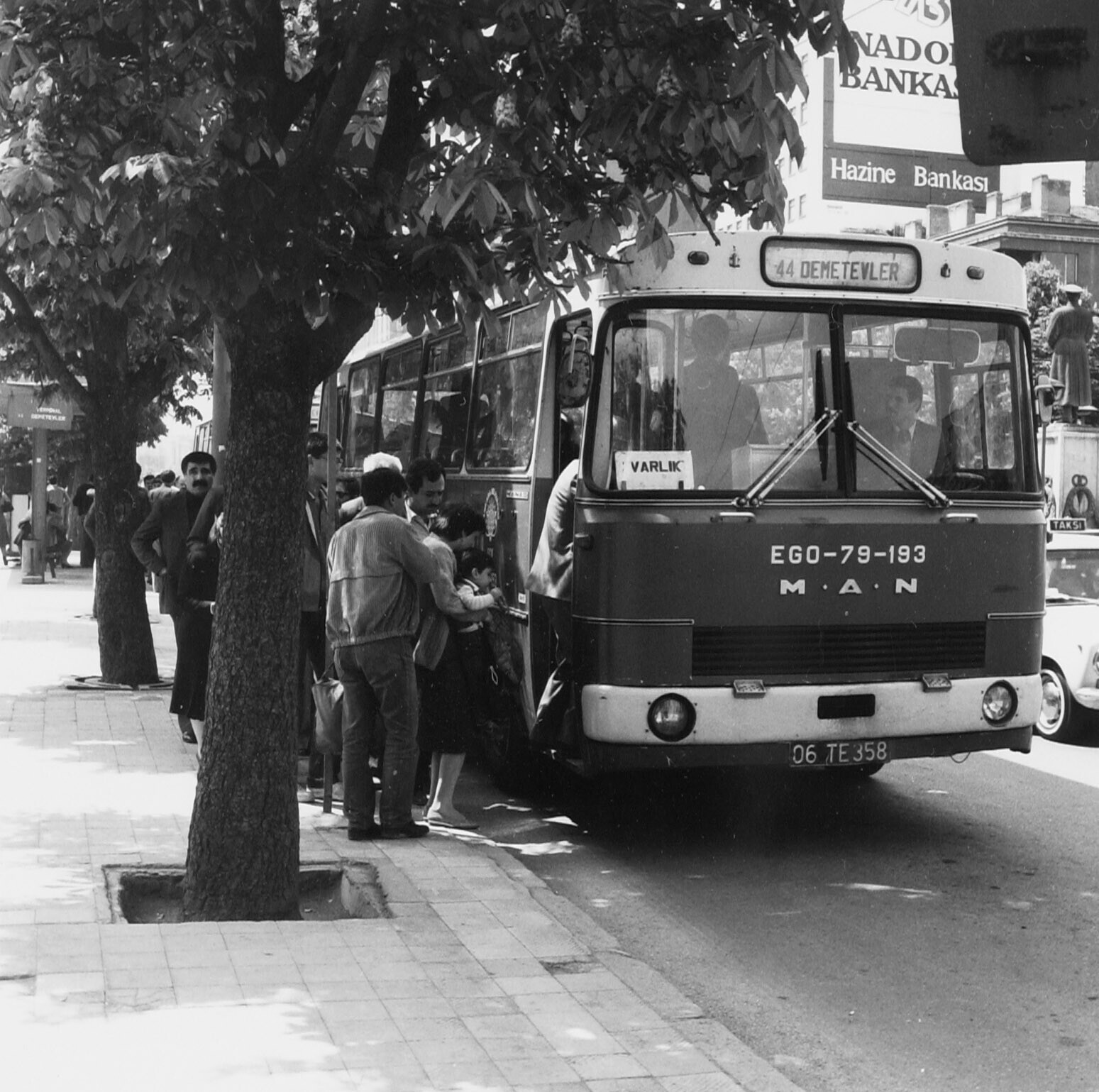Buspassagiers stappen in voor de stadswijk Demetevler
