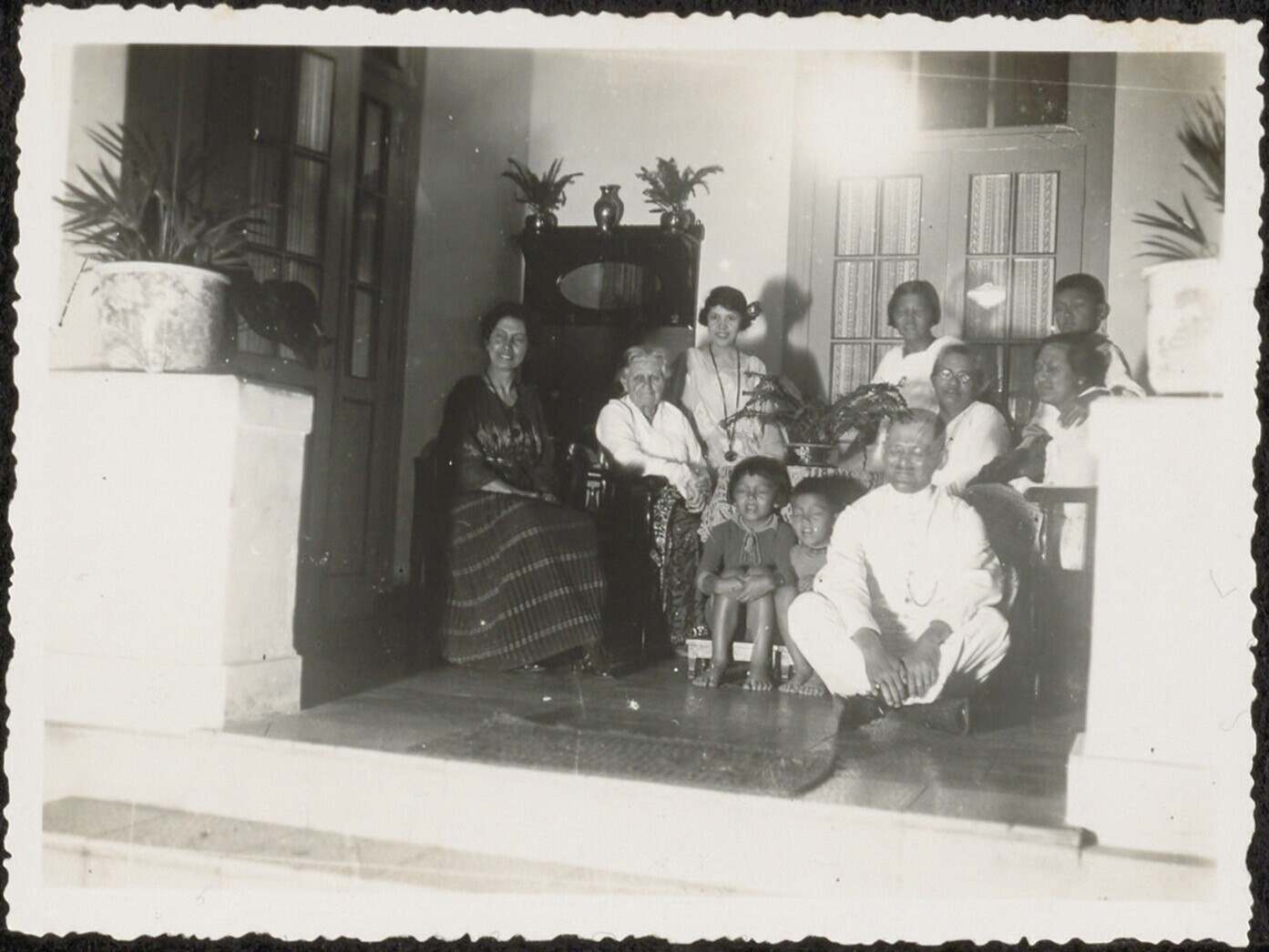 Groepsportret op de galerij van een huis
