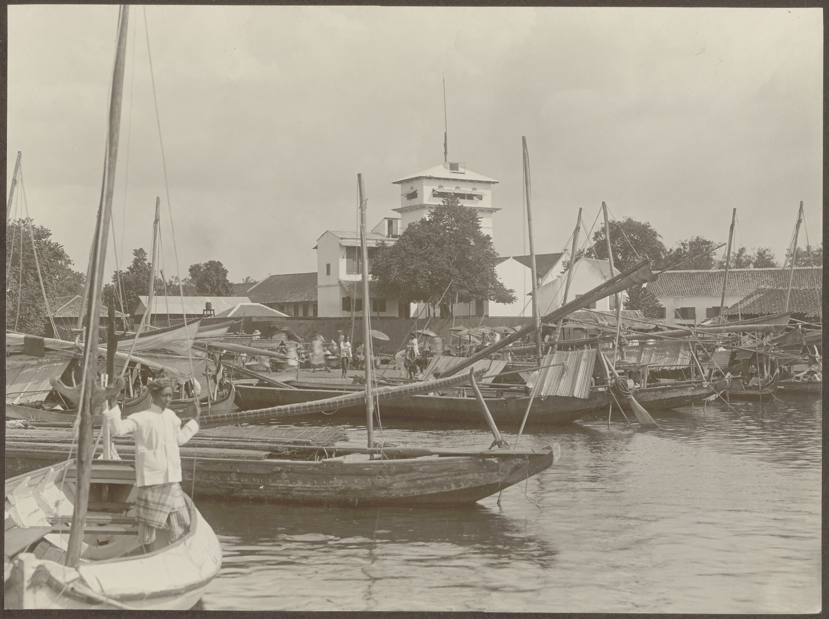 Prauwen in het Havenkanaal bij de Uitkijk en Pasar I...