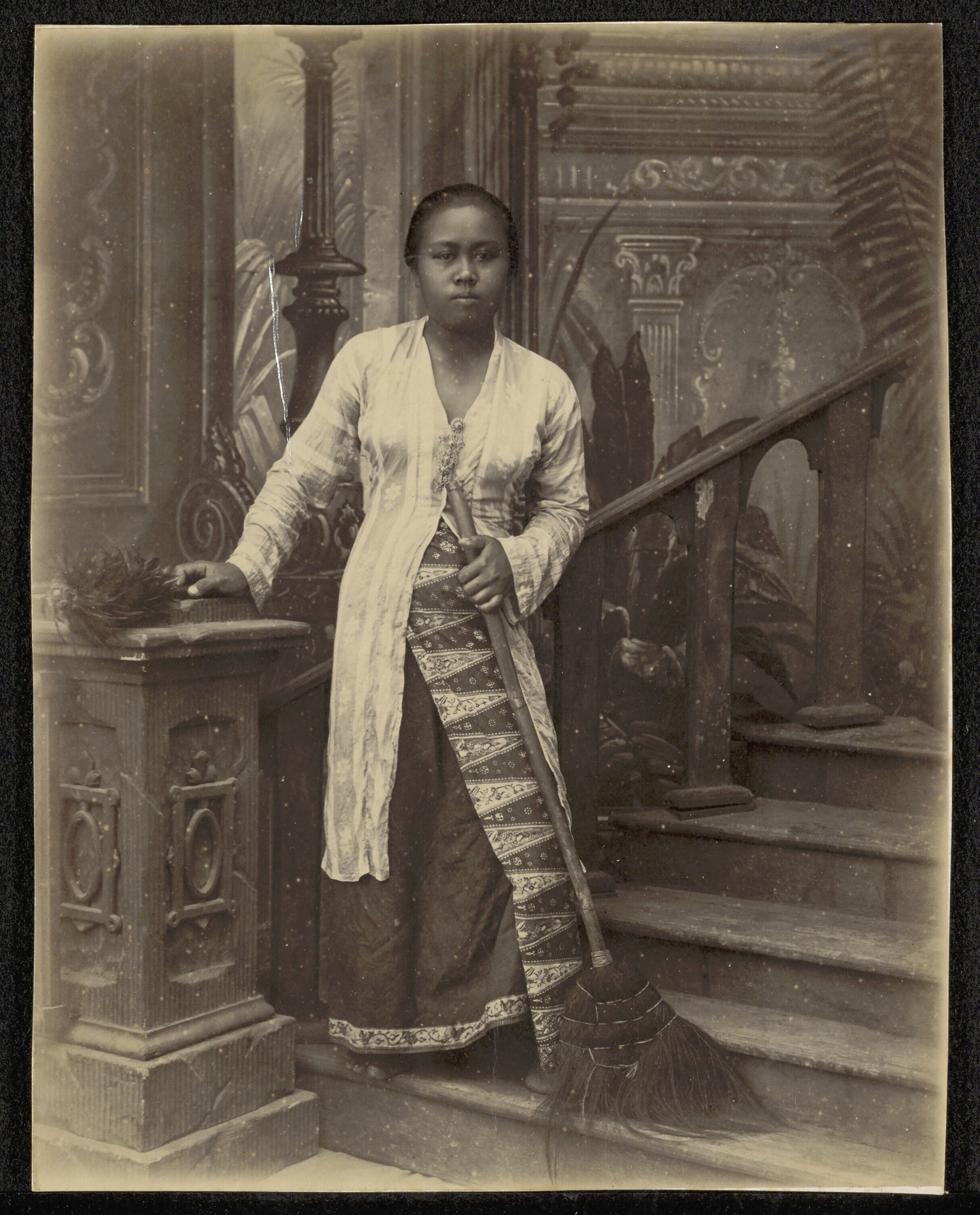 Javaans personeel poseert in de tuin van het paleis ...