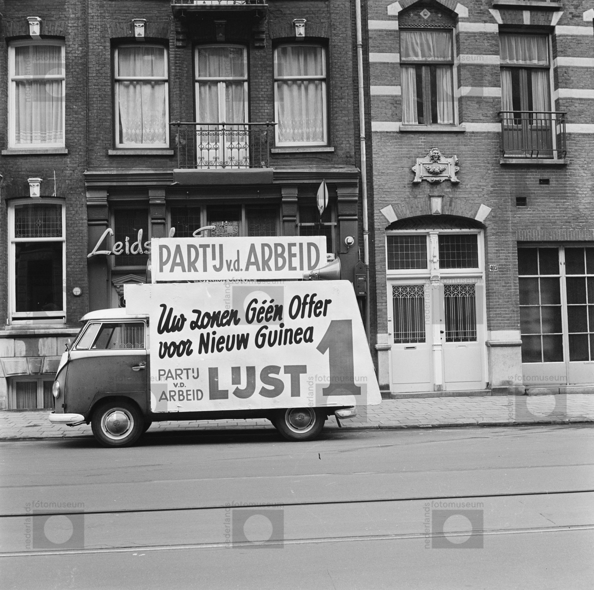 Amsterdam, Marnixstraat. Propagandawagen van de P.V....
