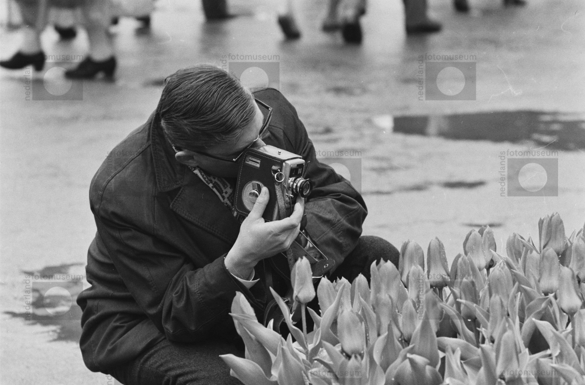Lisse, Keukenhof. Pasen. Man fotografeert de tulpen.