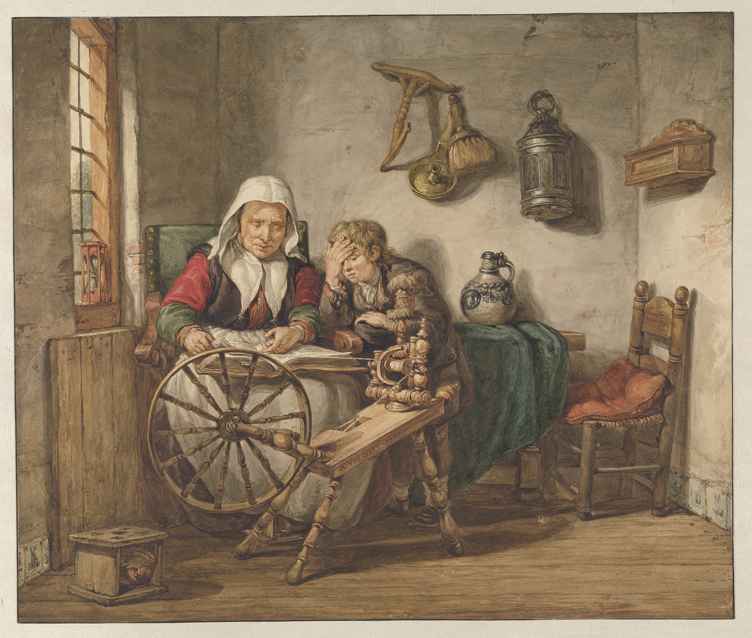Een oude vrouw leest in de bijbel voor een jongen we...