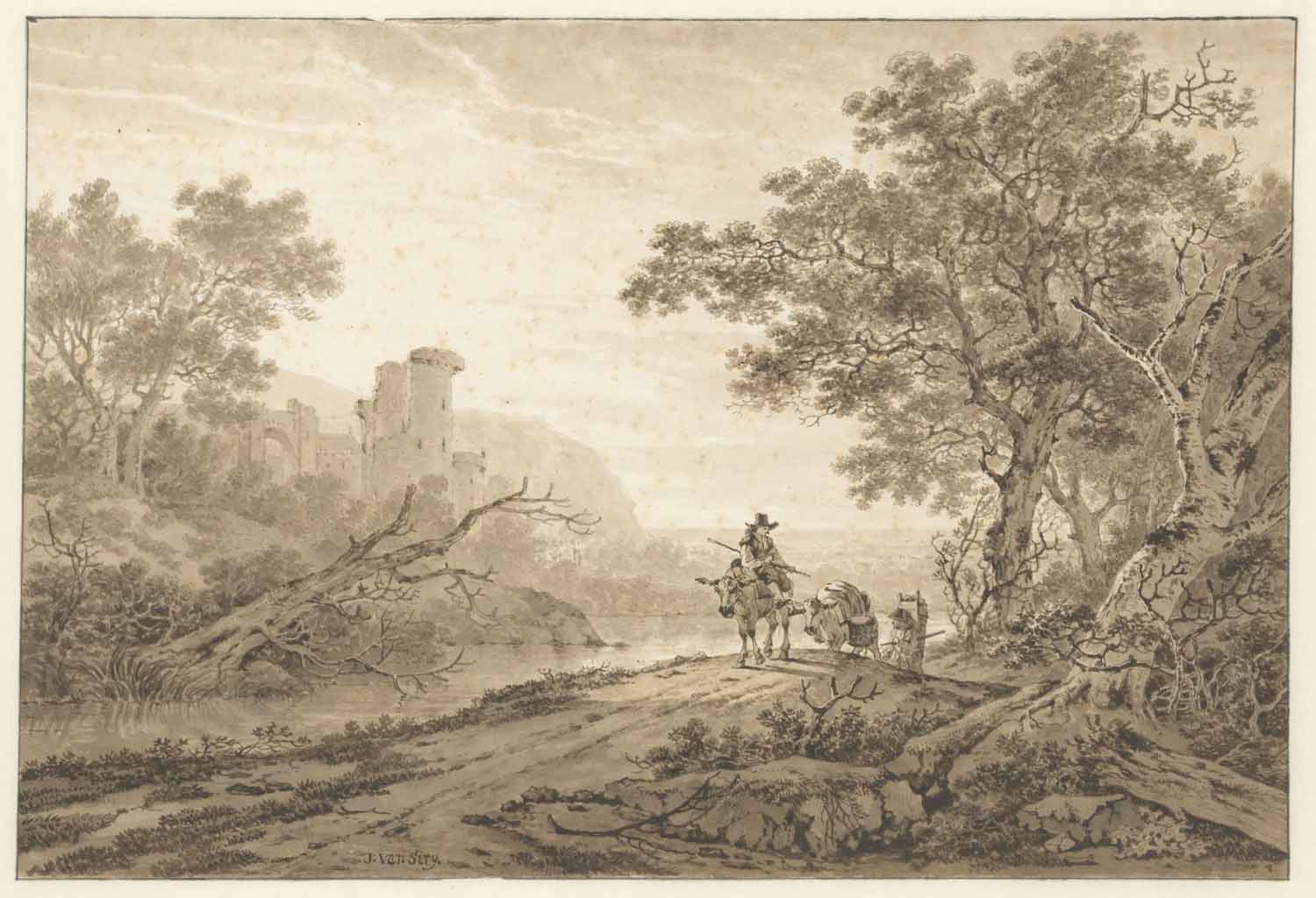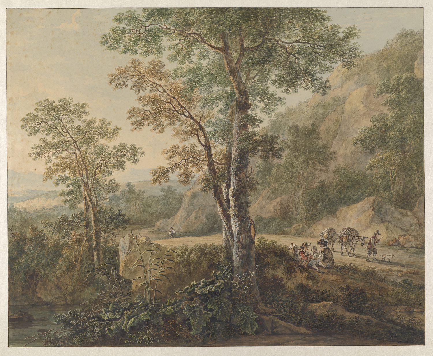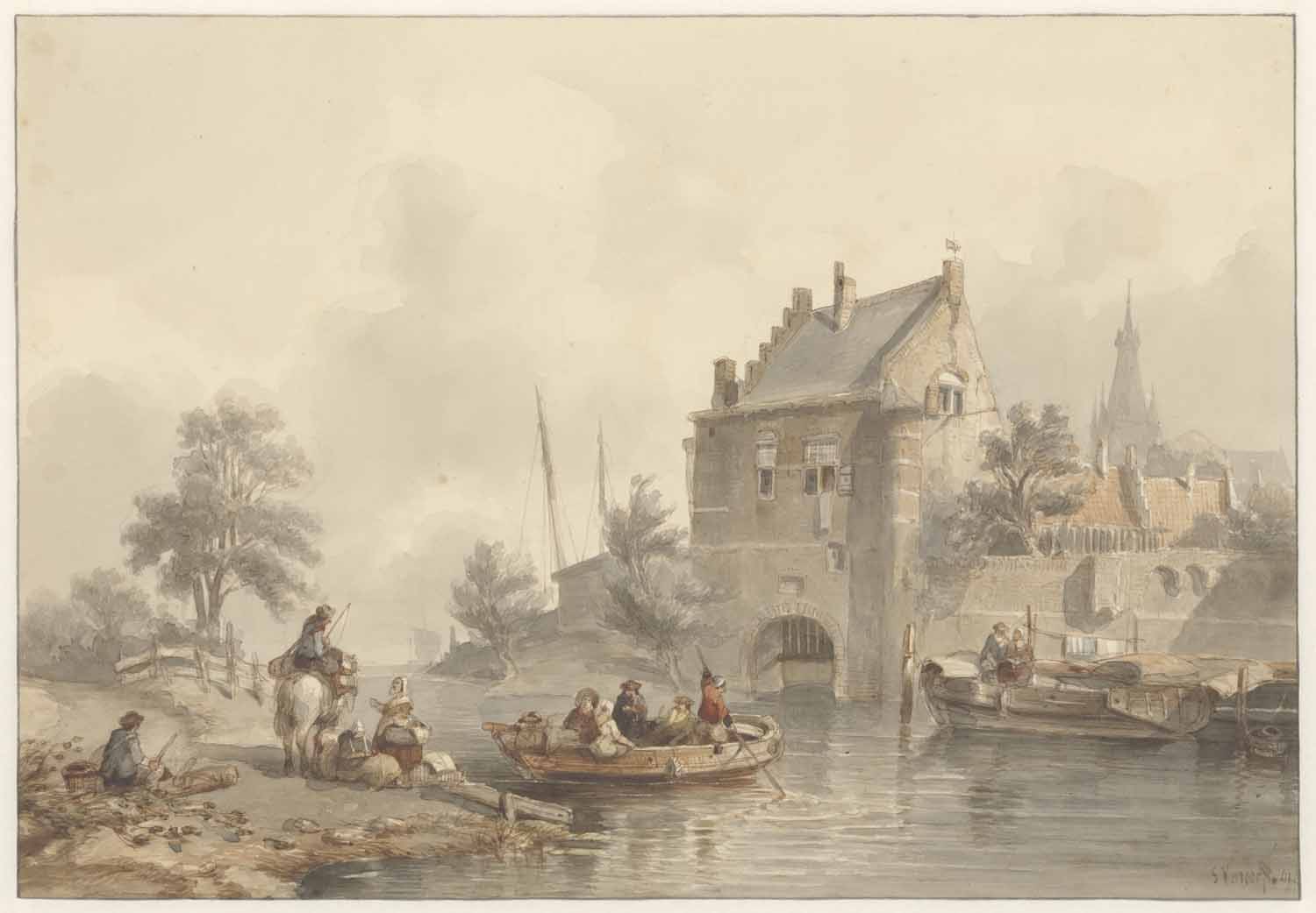 Rustende landlieden bij eenen stadswal. Enkele schet...