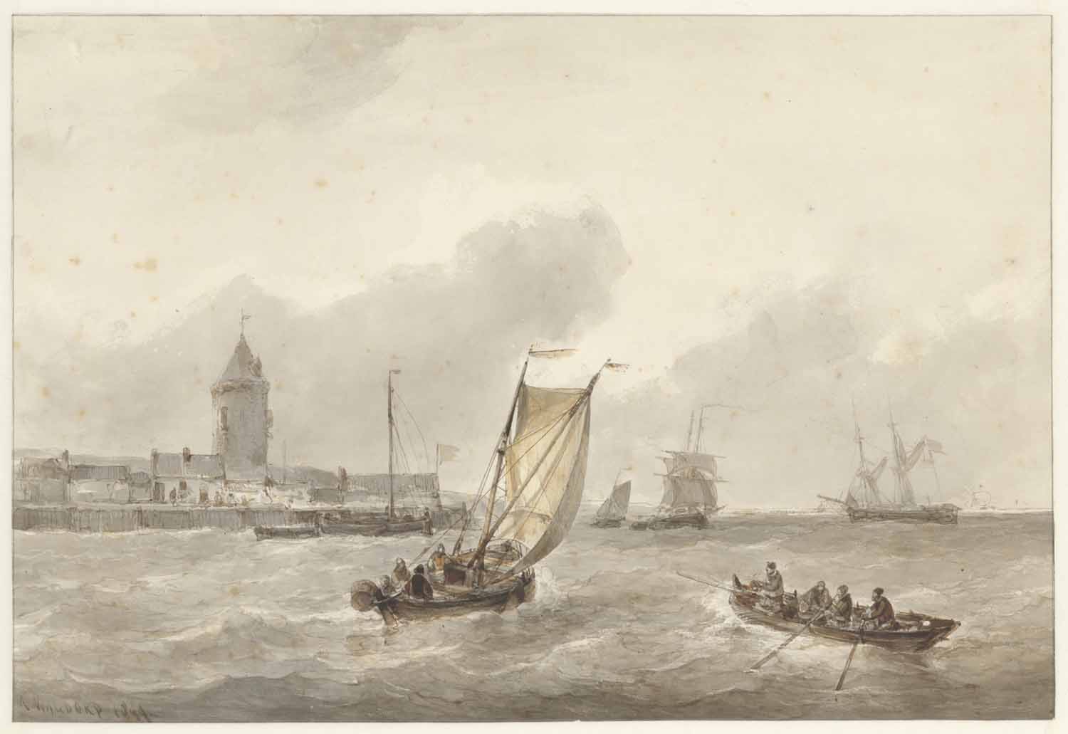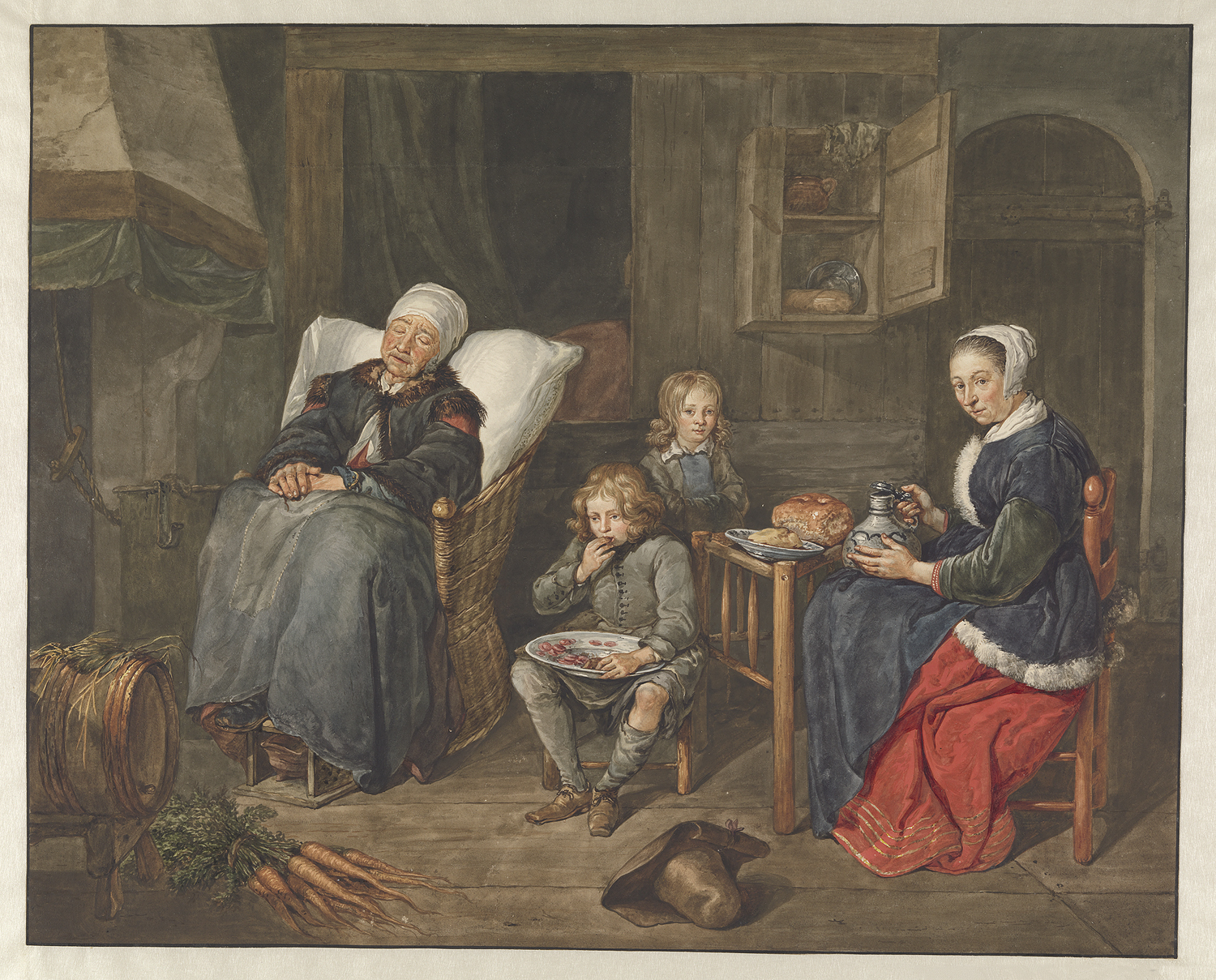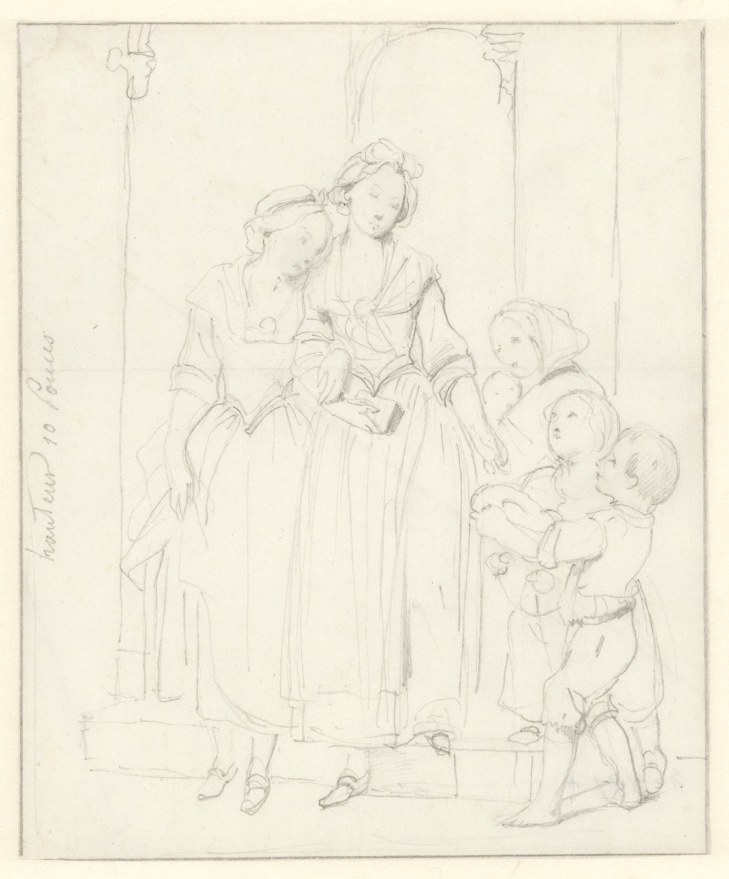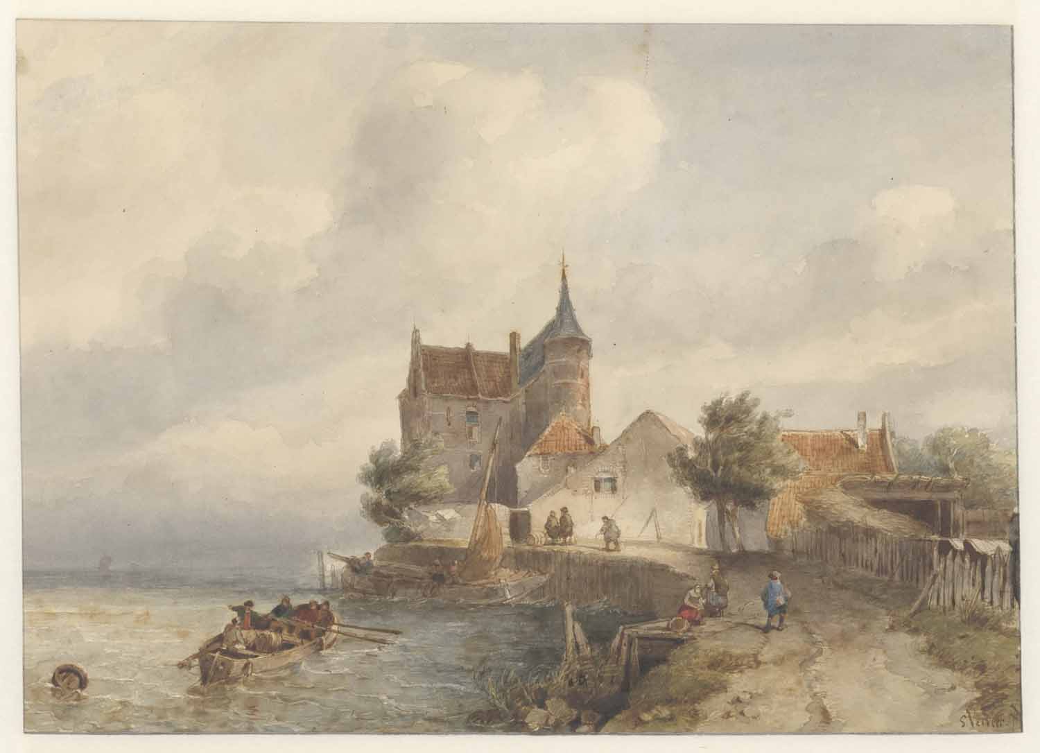 Rustende landlieden bij eenen stadswal. Enkele schet...