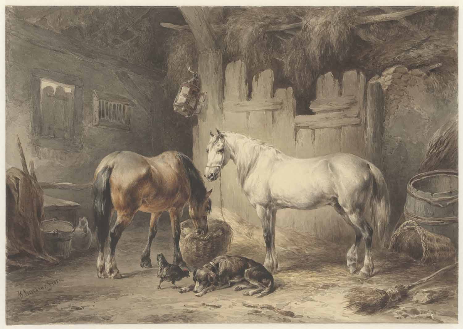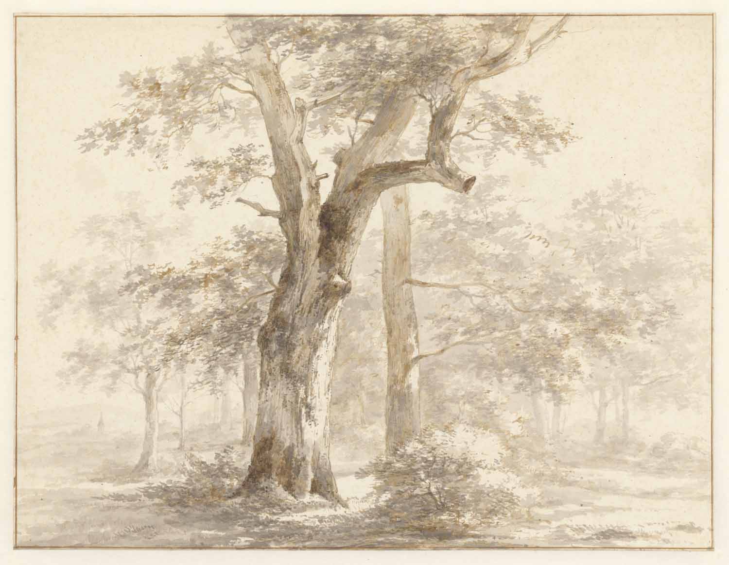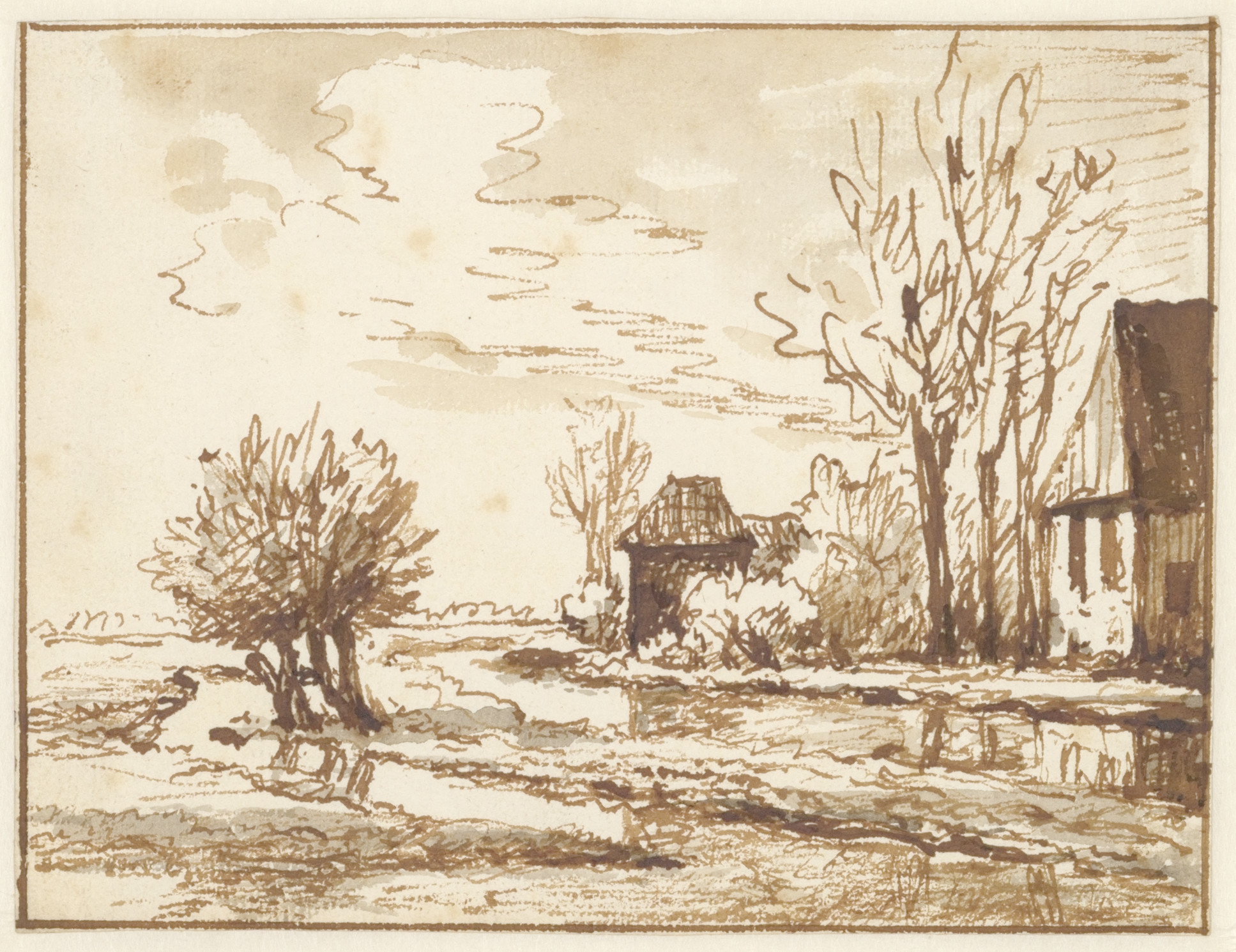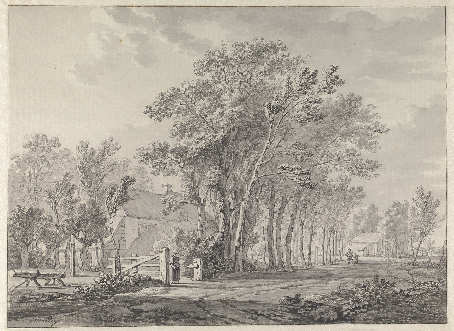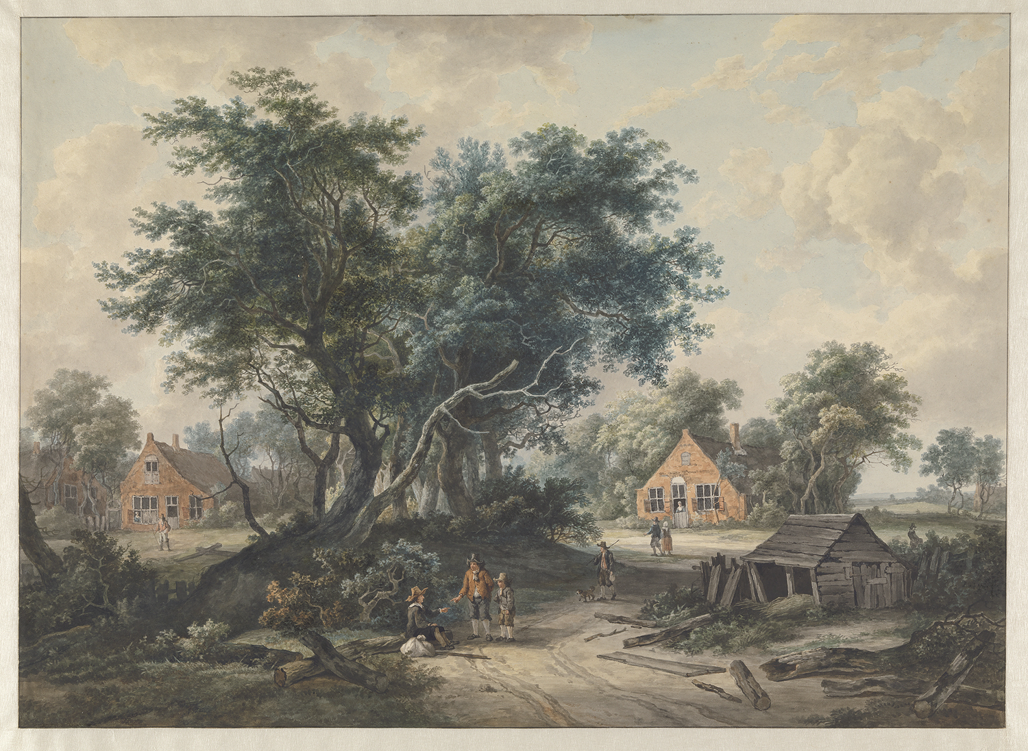 Naar Hobbema. Boerenwoningen bij hoog geboomte