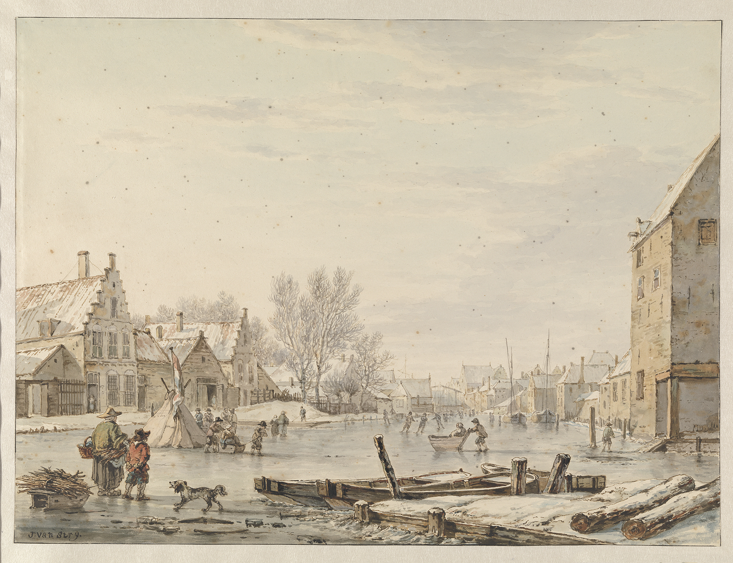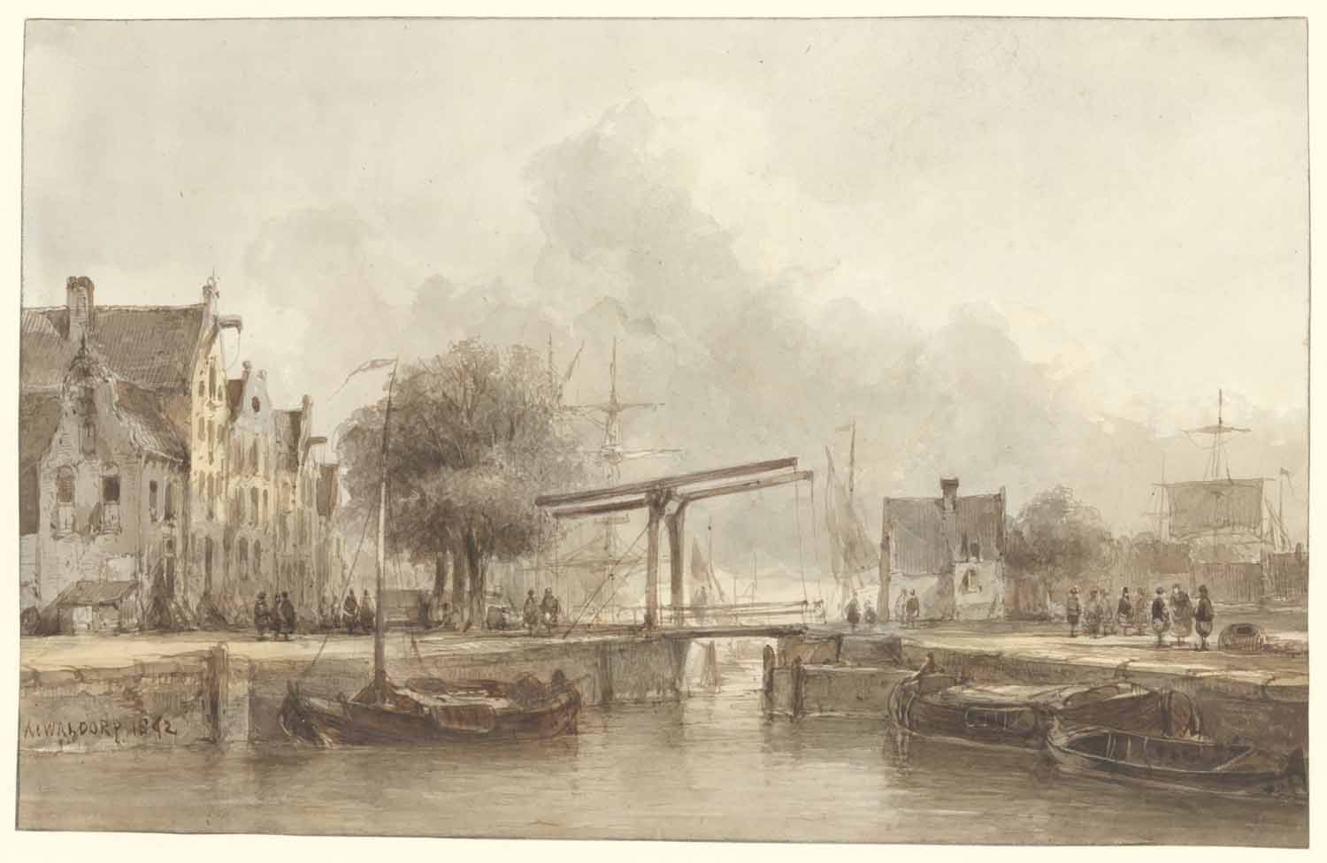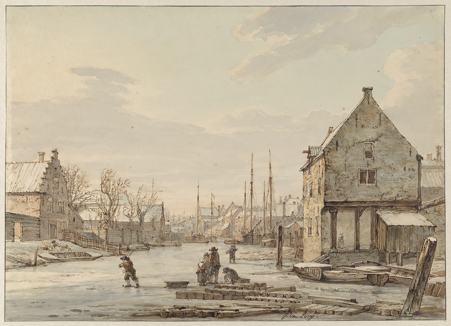 Gezicht aan de stadswal te Dordrecht bij Winter