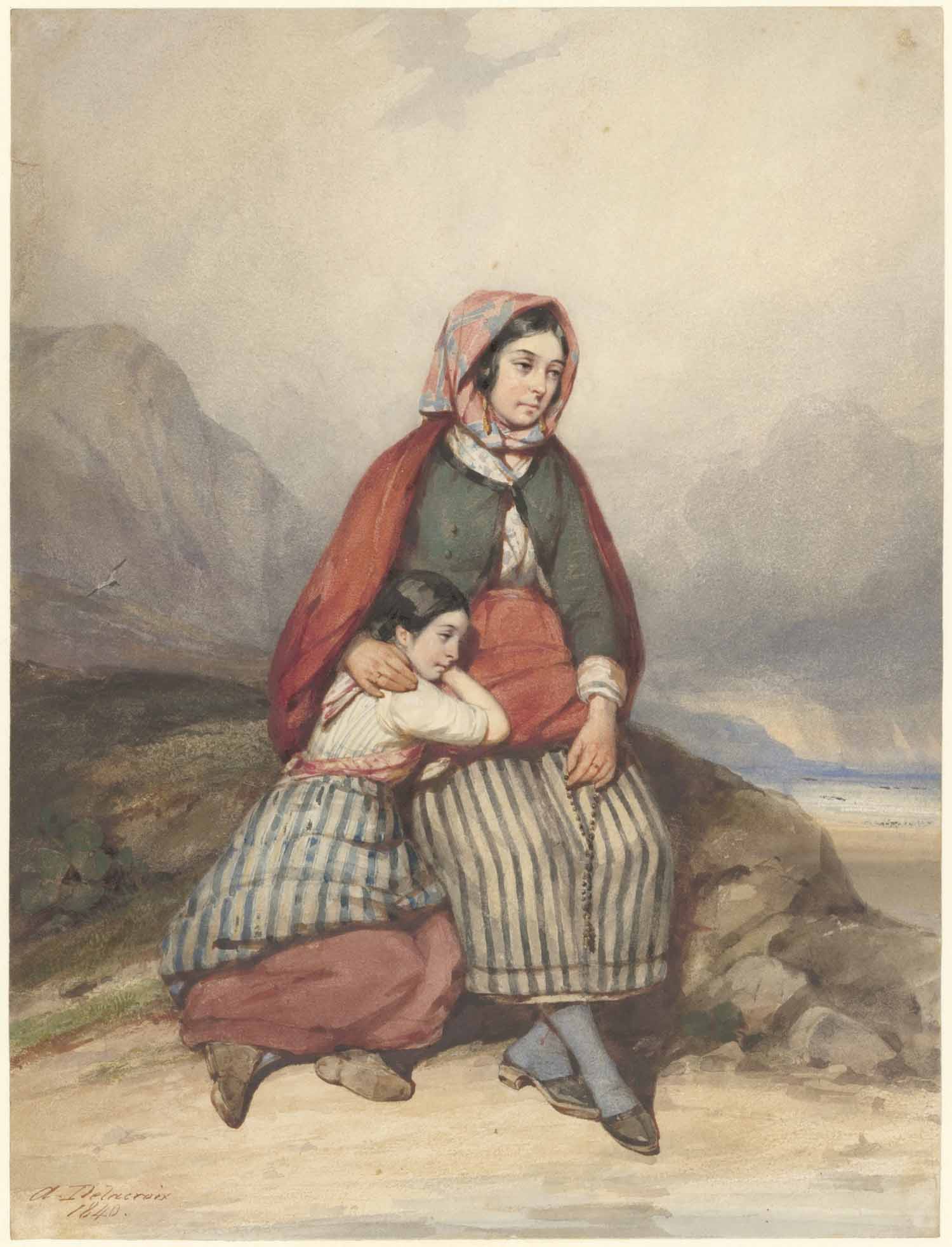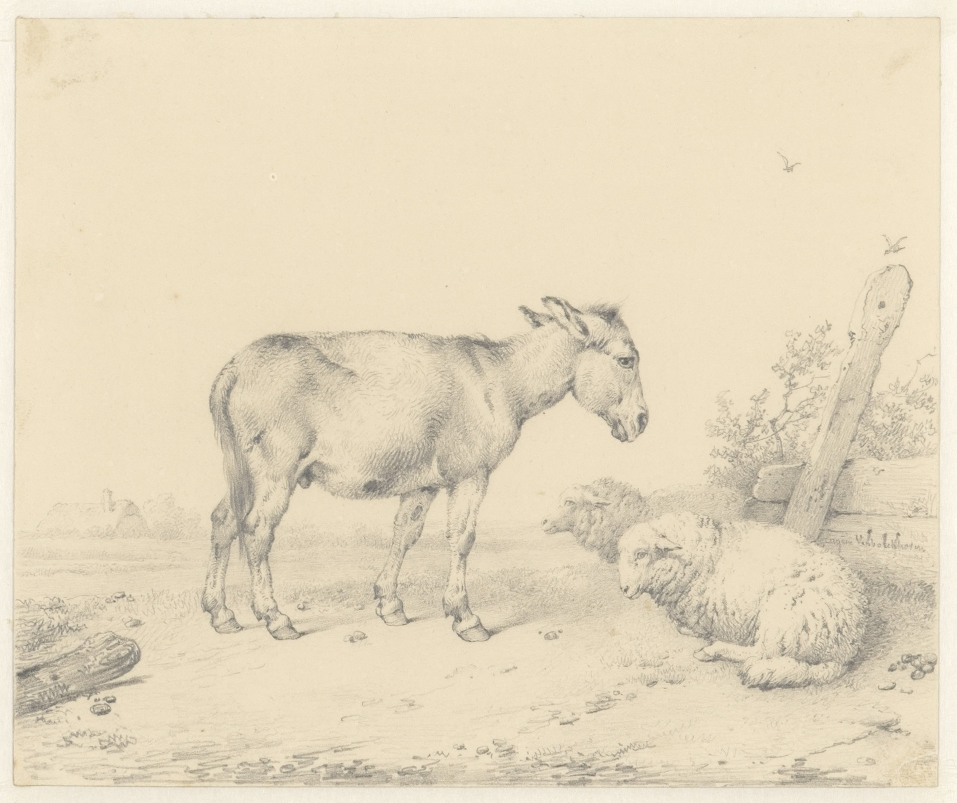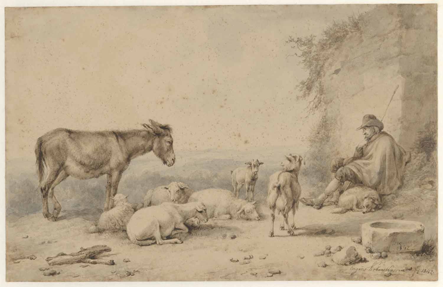 Eene boerin en een jongen bij schapen en eene koe, i...