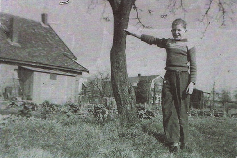 Jan de Valk in de tuin van zijn ouderlijk huis