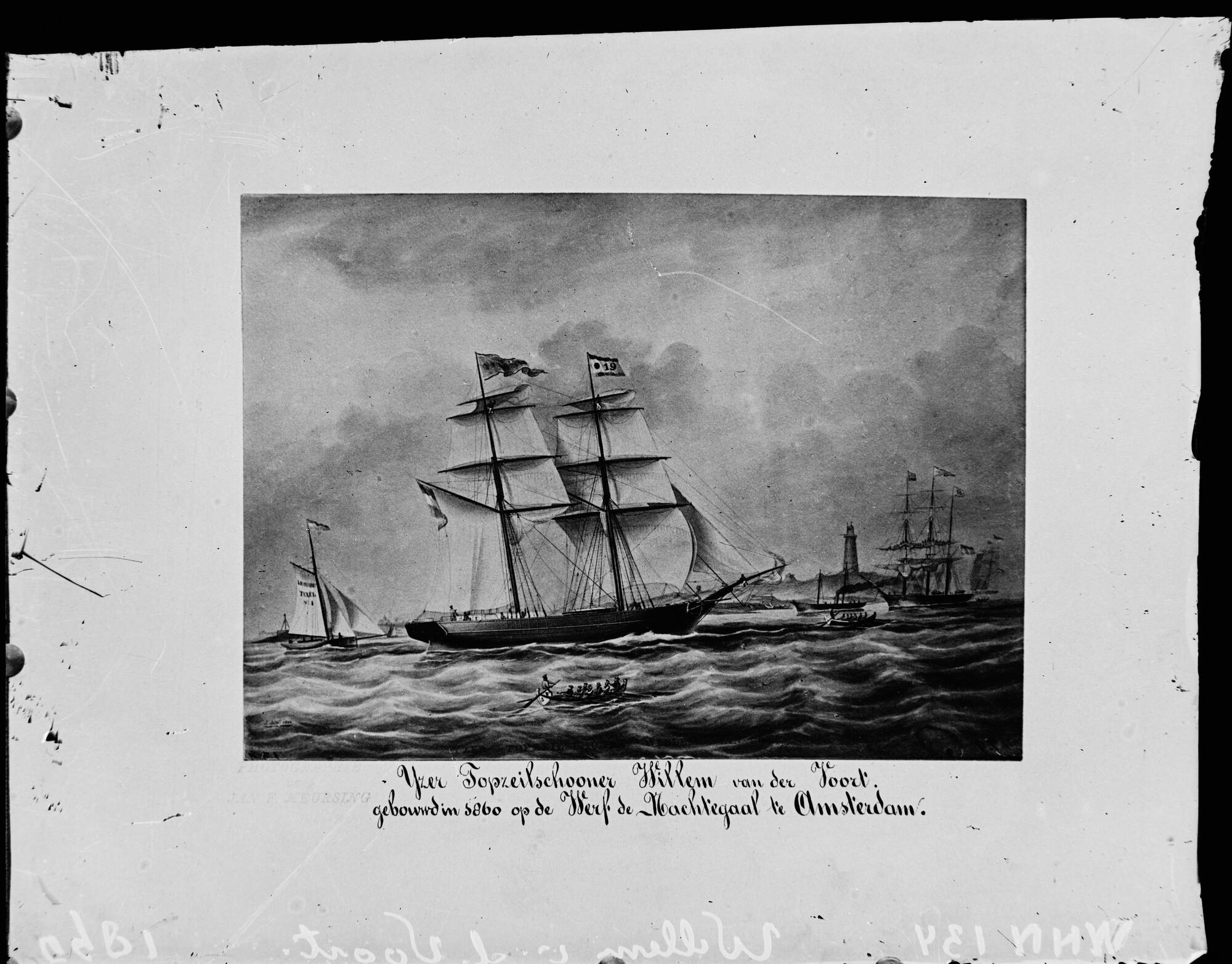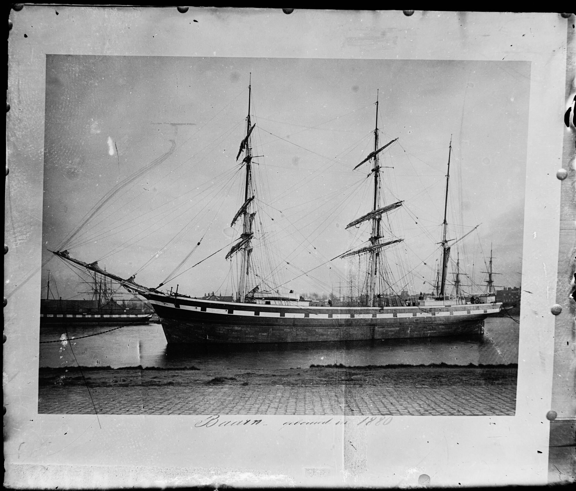 Negatief van het stalen barkschip Van Galen in aanbo...