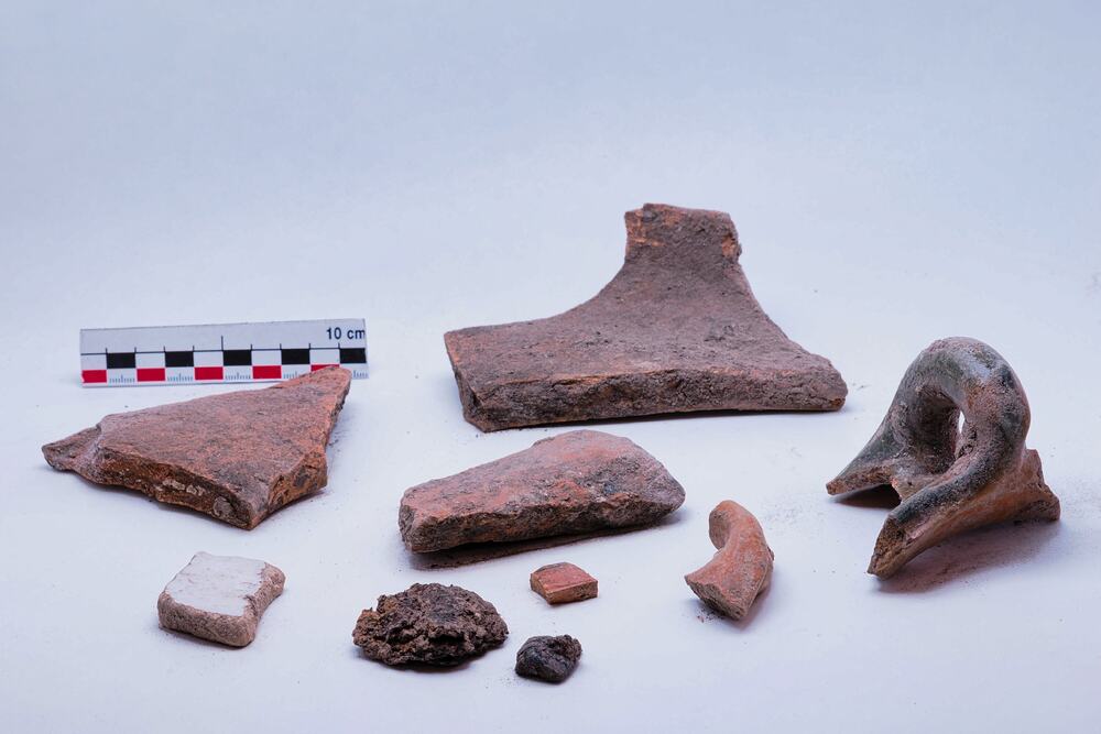 Fragmenten, aardewerk/leisteen/schelp/glas/been/kool...