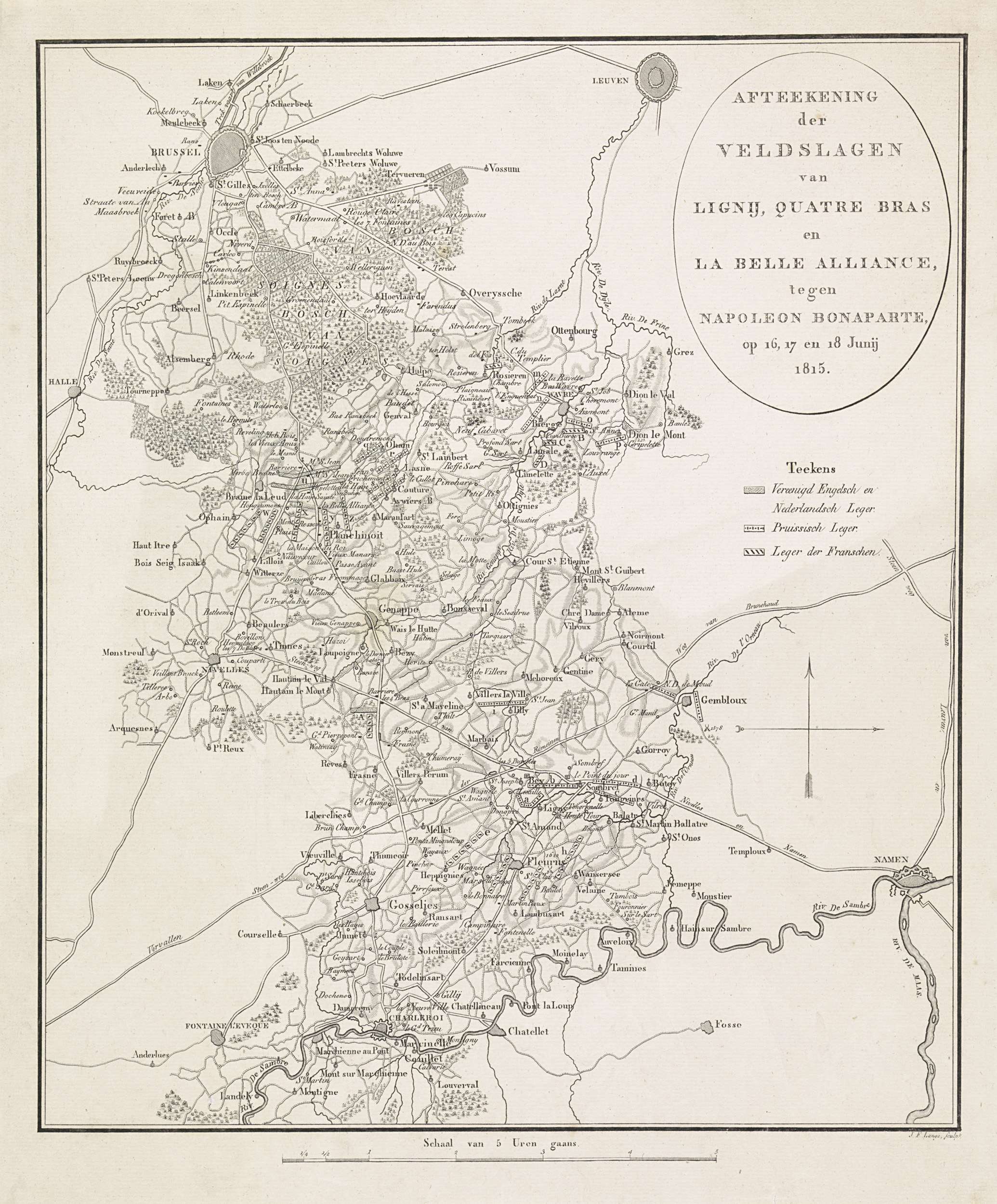 Plan van de veldslagen bij Quatre-Bras en Waterloo, ...