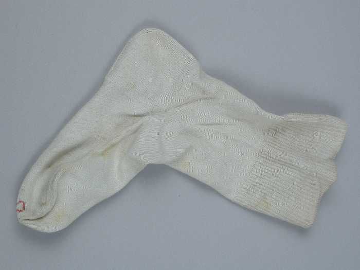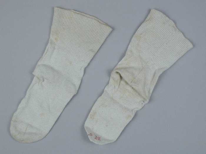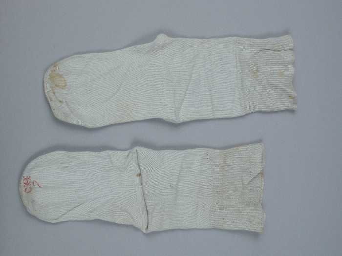 Kindersokken gebreid van fijn wit katoen, gemerkt on...