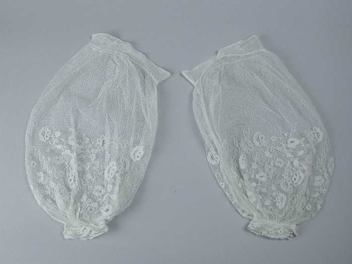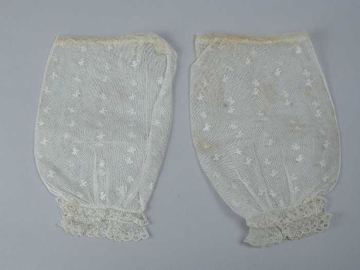 Paar ondermouwen van wit tule met witwerk borduursel...