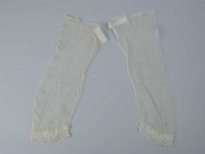 Paar ondermouwen van crèmekleurig tule met smalle ka...