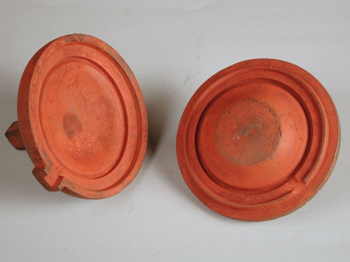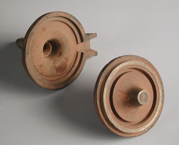 Tweedelige bronzen mal voor deksel van pot of kan