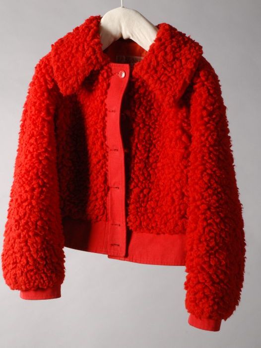 Korte battle-dress damesjas, rood teddy-achtige imit...
