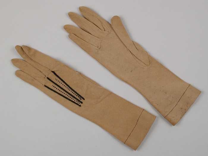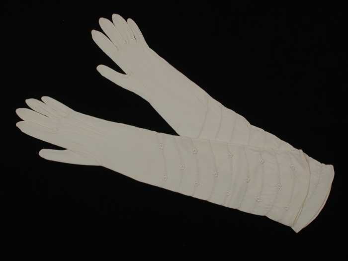 Lange crèmekleurige handschoenen, lengtepatroon in t...