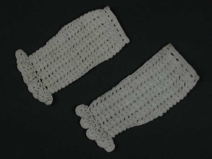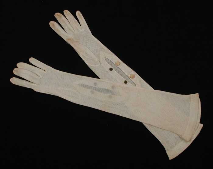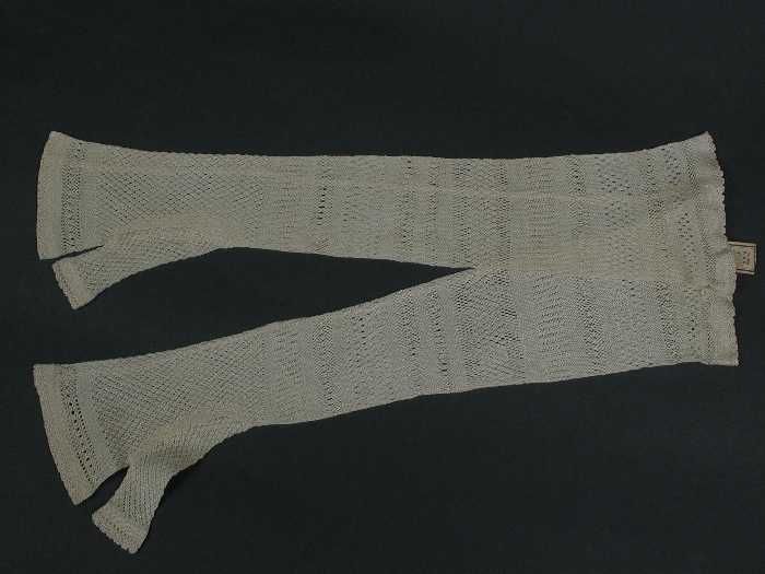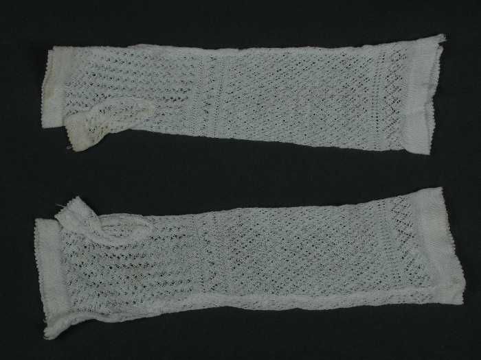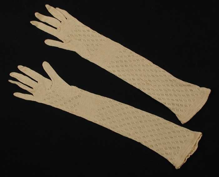 Paar lange dameshandschoenen van wit netachtig trico...