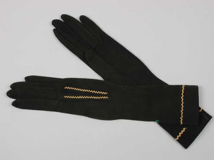Paar korte dameshandschoenen van zwart tricot katoen...
