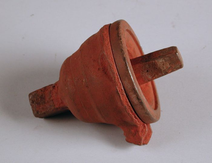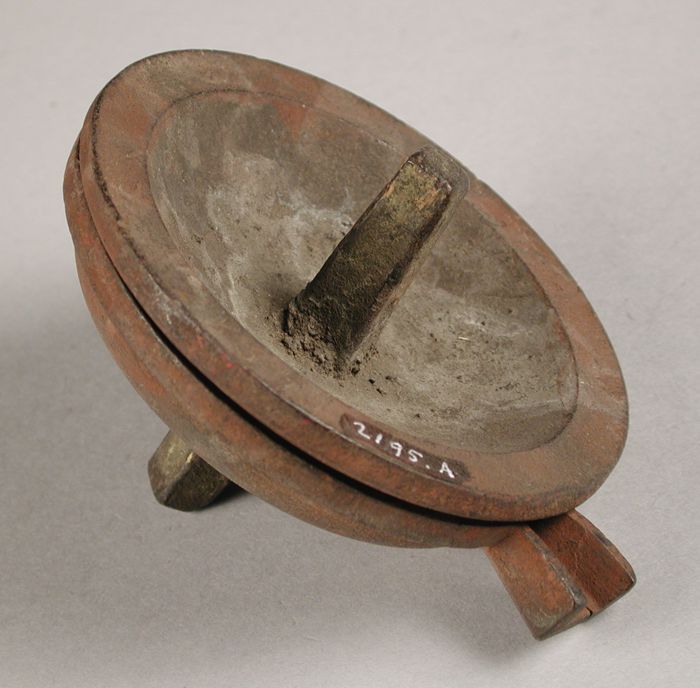 Tweedelige bronzen mal voor schroefdeksel van gortepot