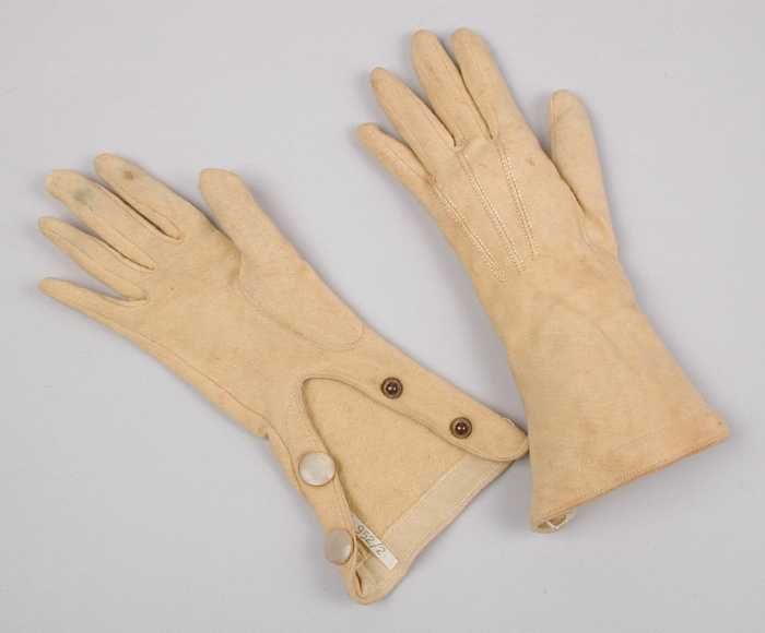 Paar korte dameshandschoenen van beige tricot katoen...