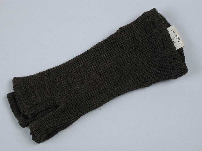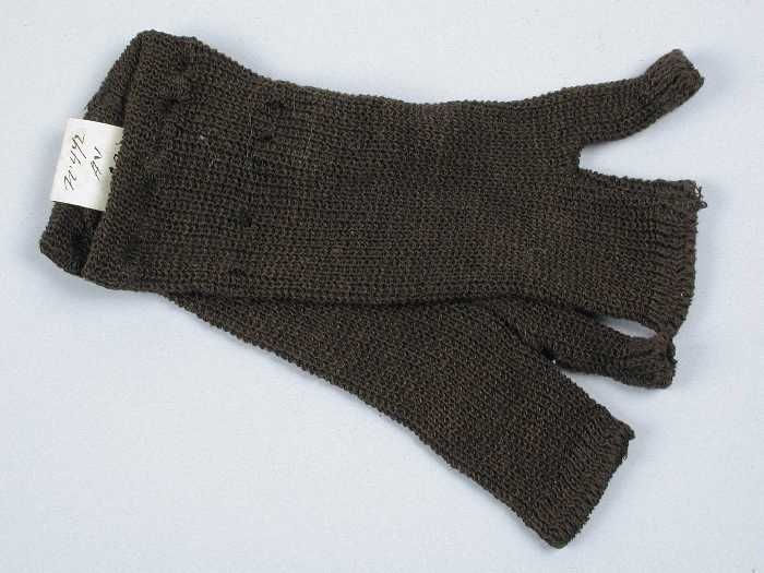 Paar handschoenen van donkerbruine wol, grof gebreid...