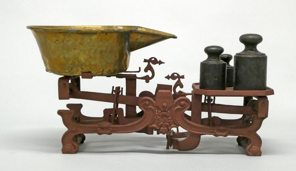 vijzel met stamper van messing, 19e eeuw