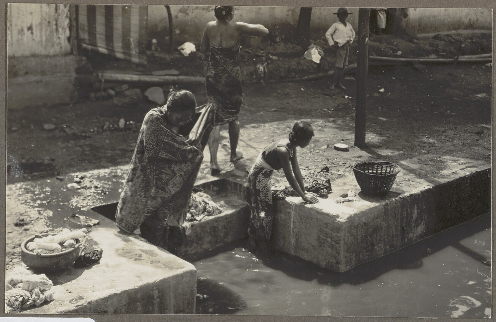 Een wasplaats in een stadskampong te Batavia