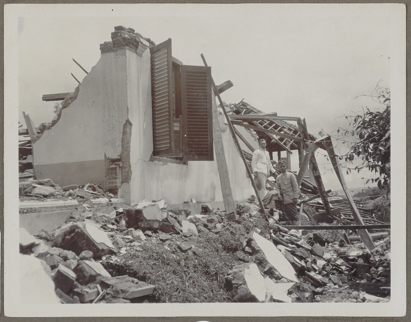 Ingestorte woning te Wonosobo op Midden Java door de...