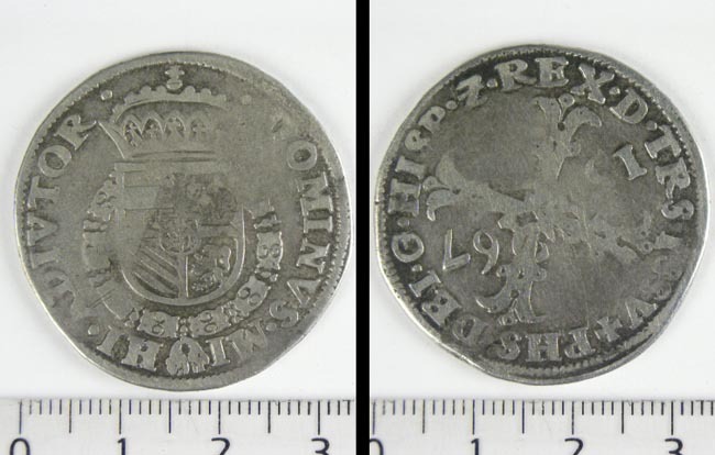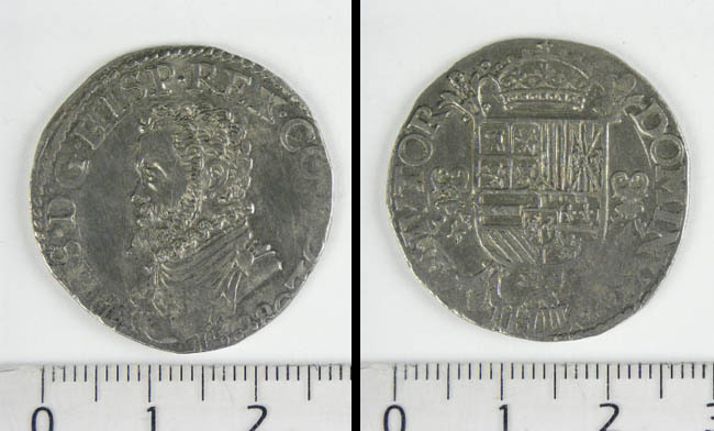 Driemijtstuk met fragment van Philips II muntplaats:...