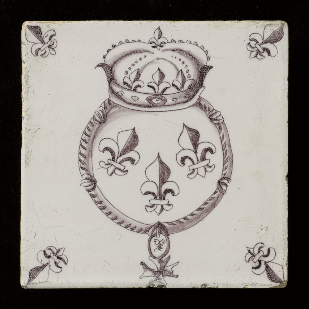Tegel van keramiek met tinglazuur, voorstellende: or...