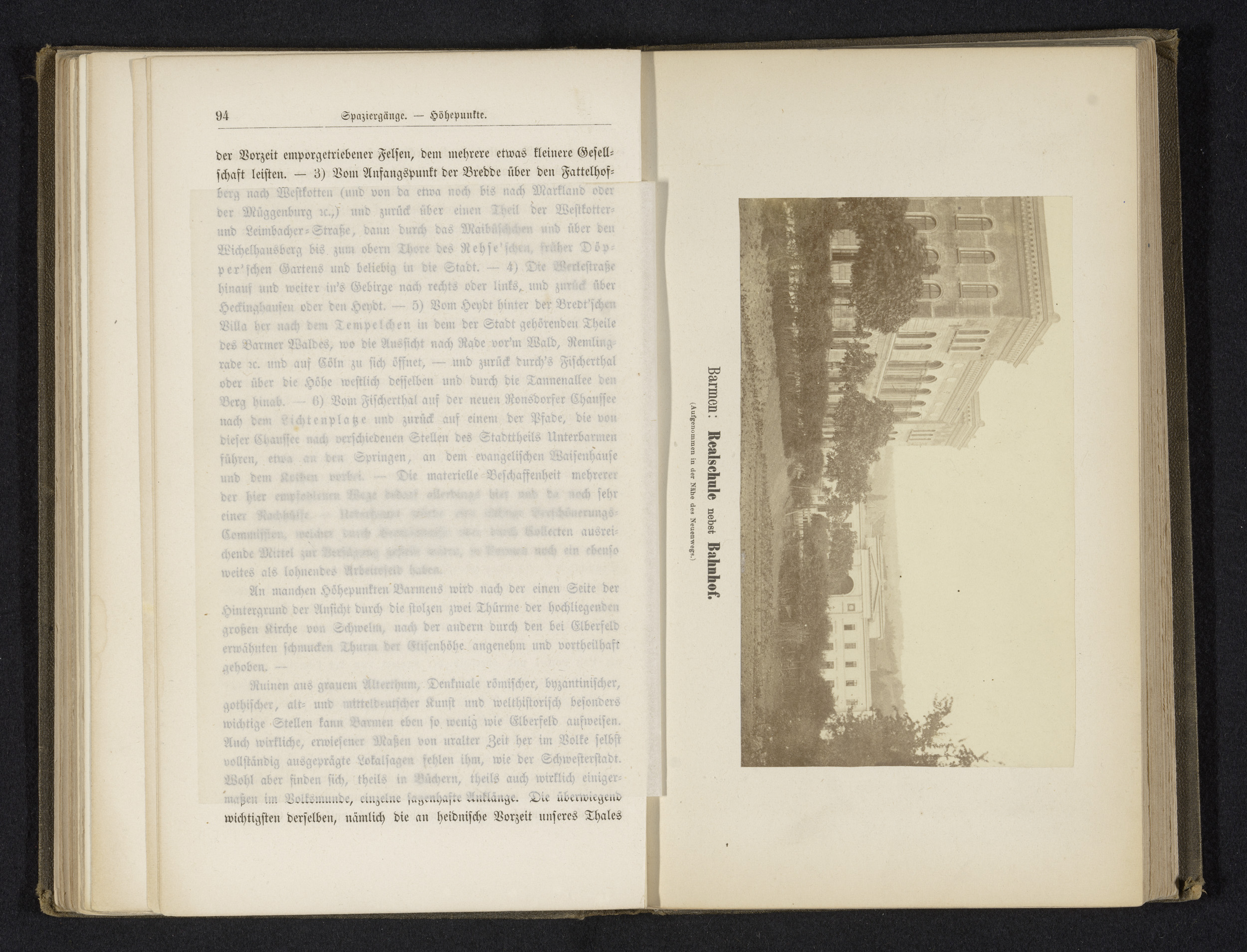 Gezicht op een school en het treinstation in Barmen
