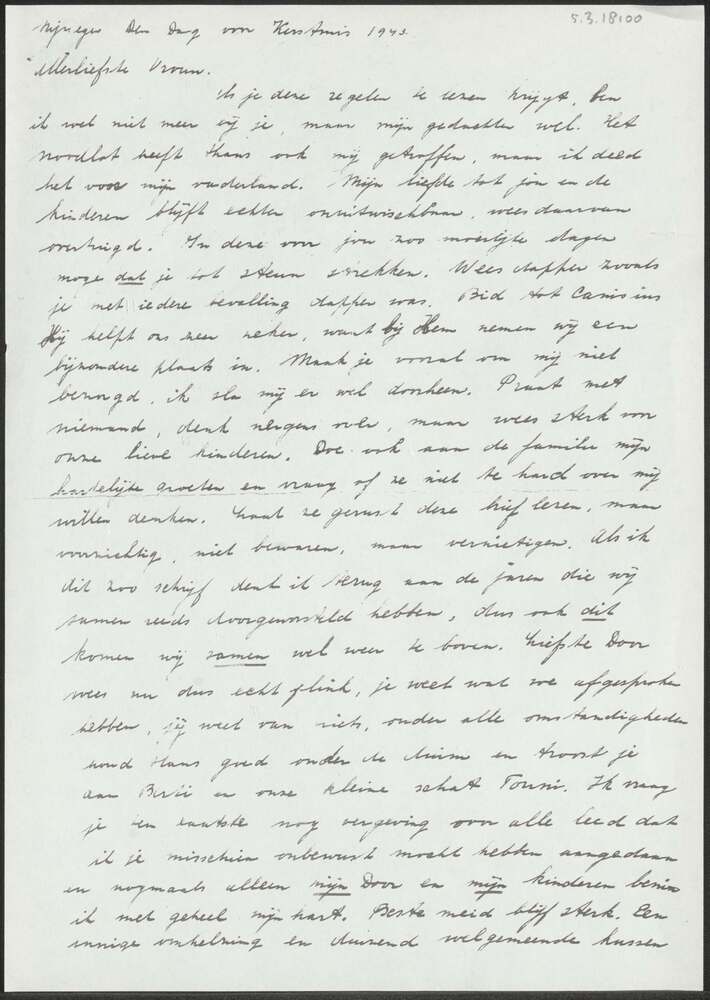 Brief van Gerrit Bernards aan zijn echtgenote 'Truus...