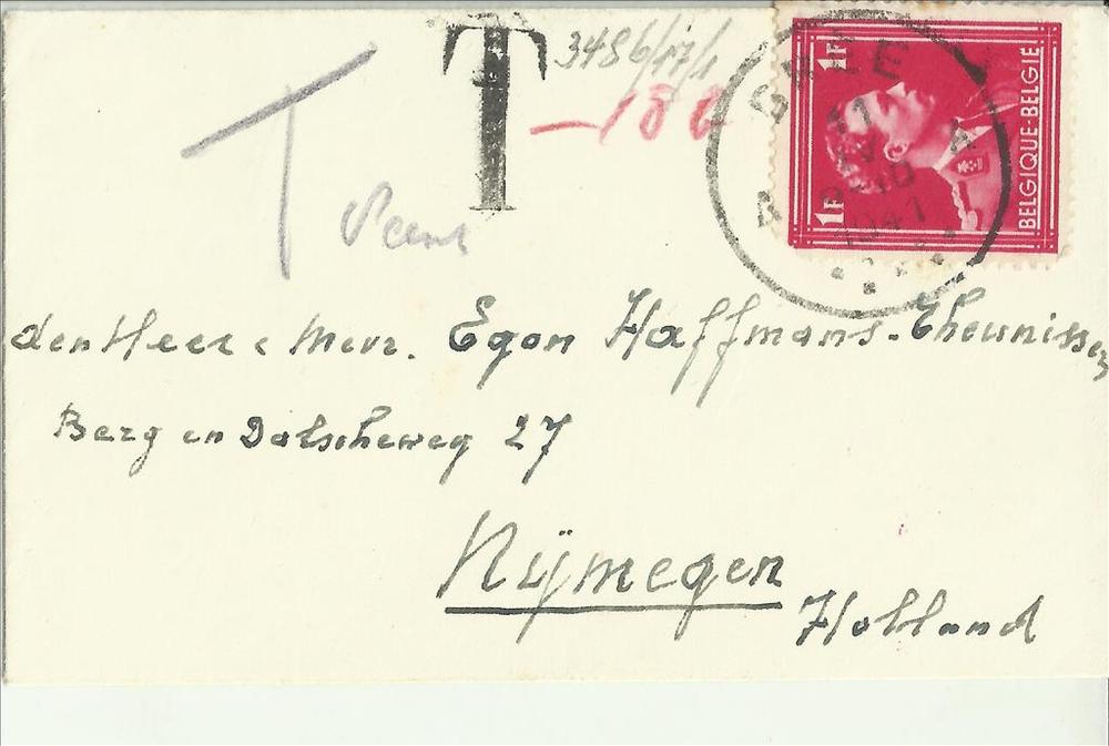 Enveloppe met kaartje aan mevr. Haffmans-Theunissen ...