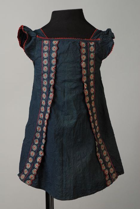Kinderjurk, schortmodel, donkerblauw katoen met in r...