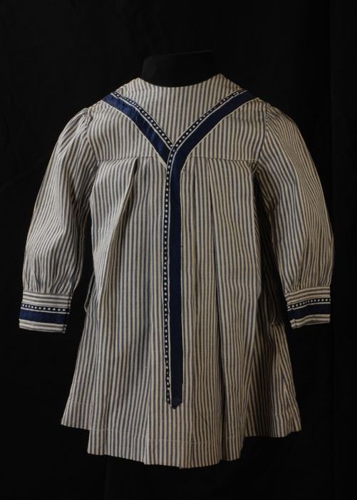 Jongensschort of morsschort van blauw-wit gestreepte...